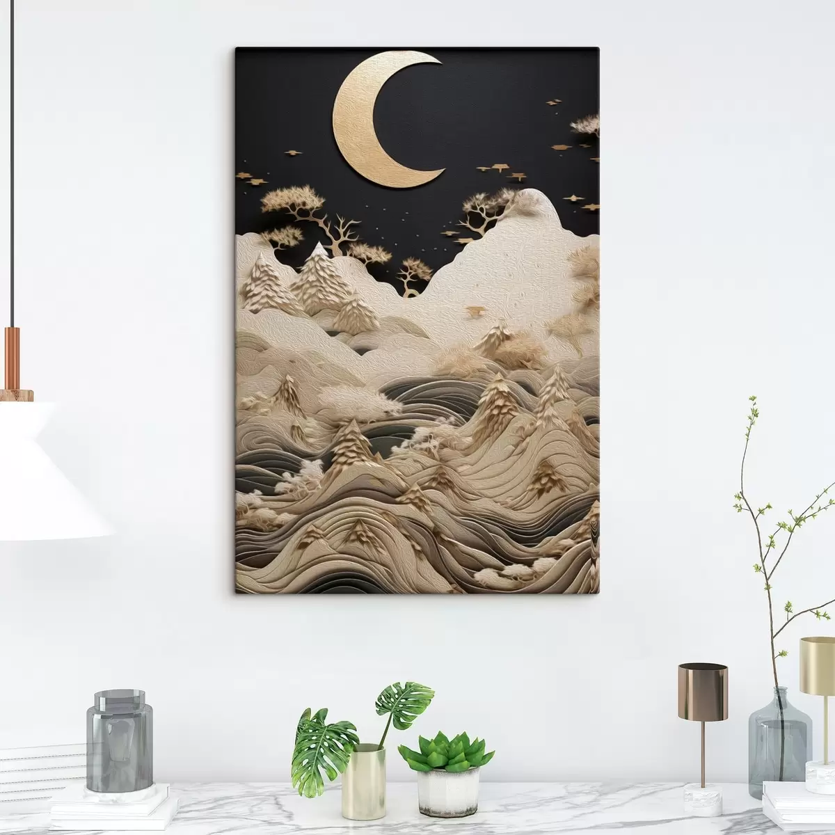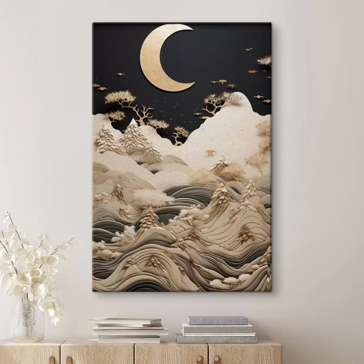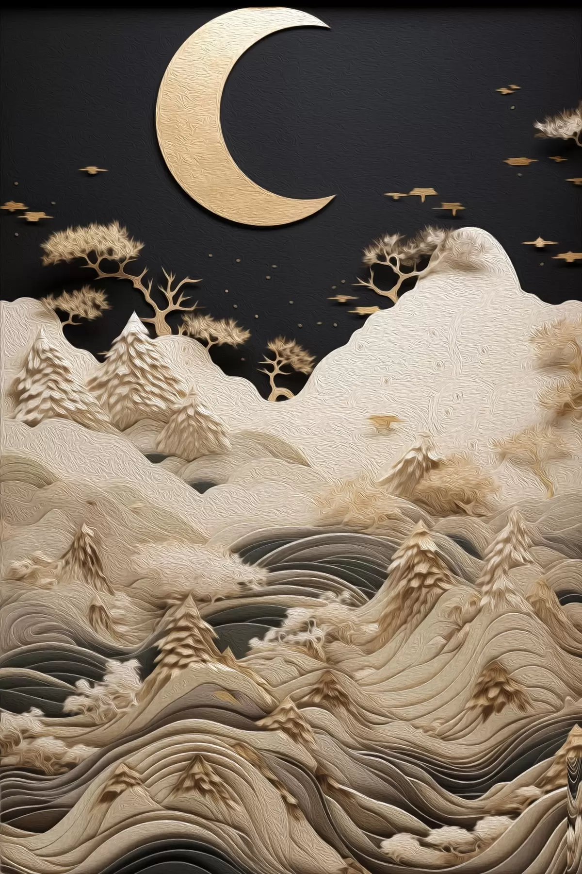 Картина Стилізовані гори та дерева під місяцем s47300