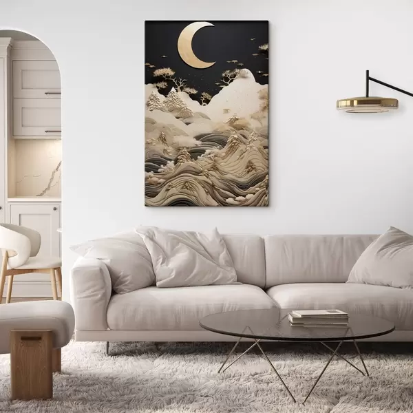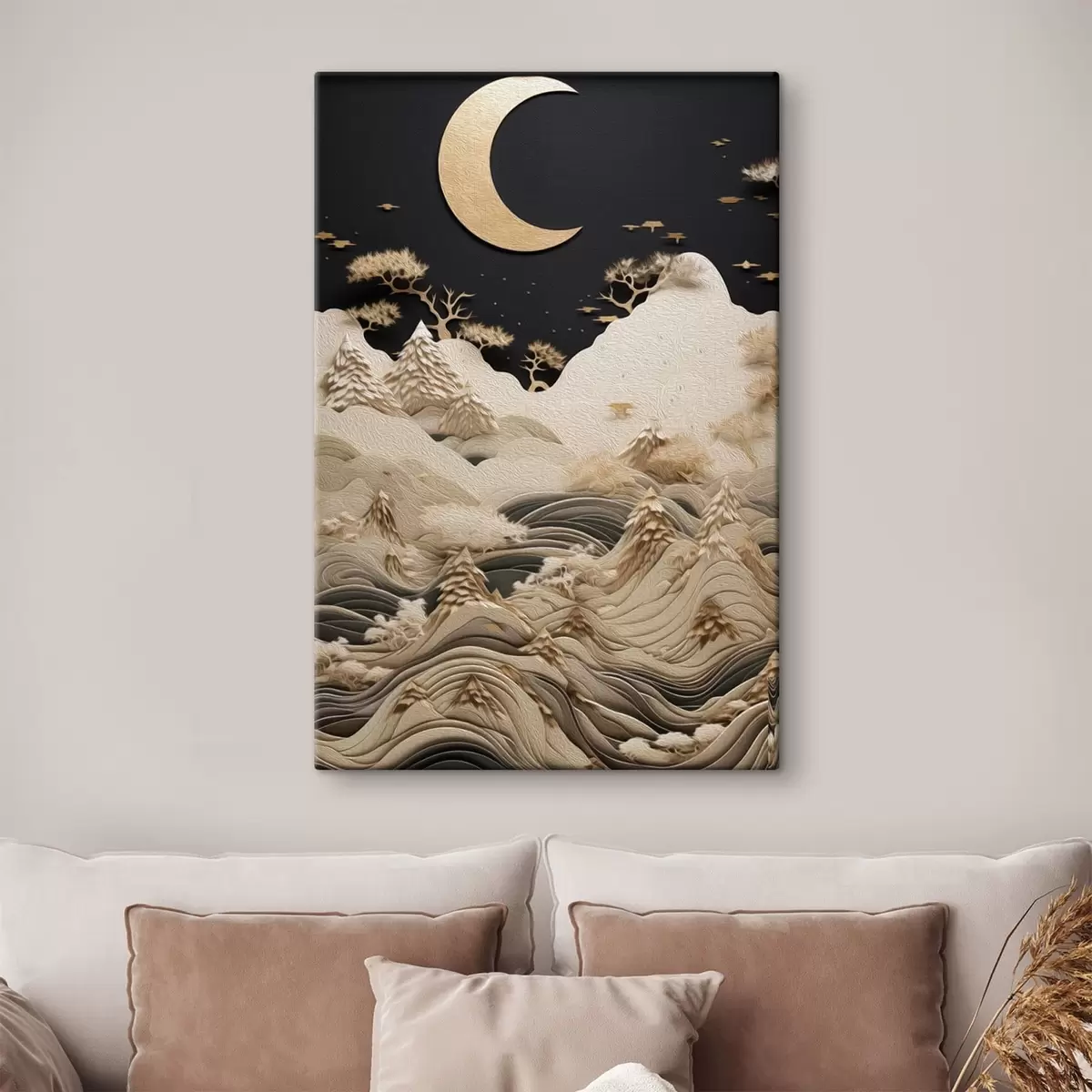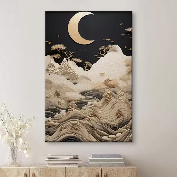 Картина Стилізовані гори та дерева під місяцем Арт. s47300