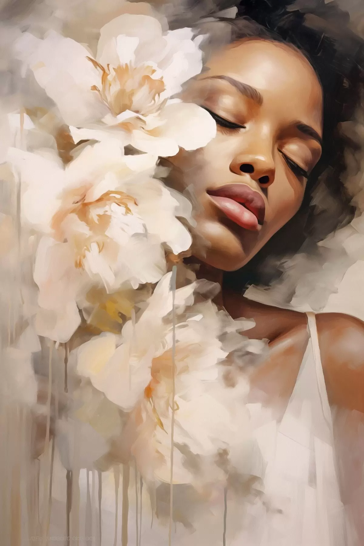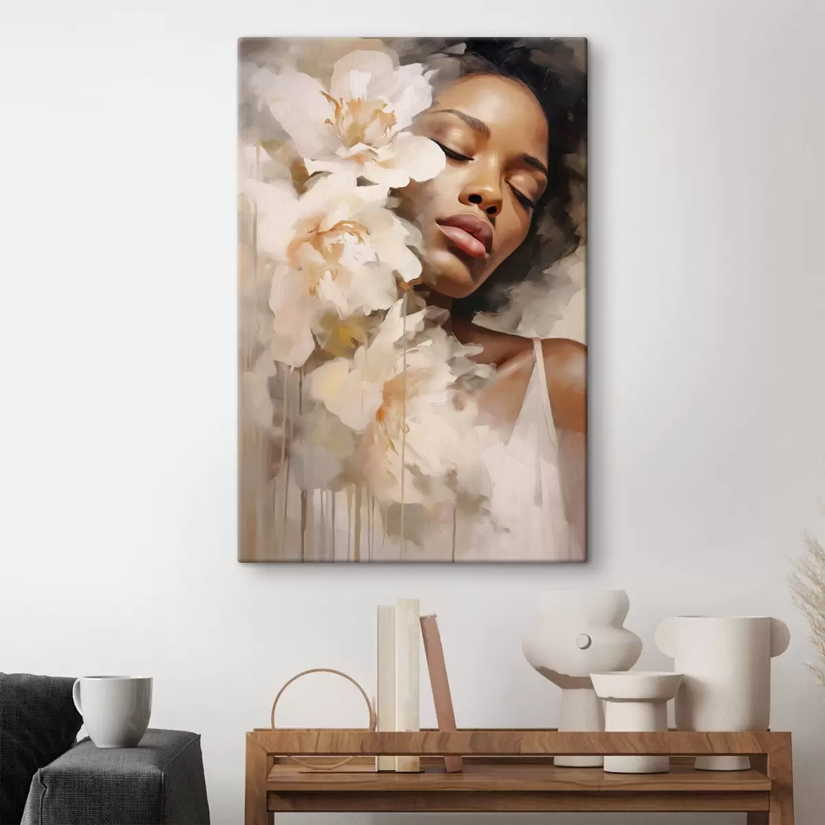 Картина Жіночий портрет поруч із великими квітами Арт. s47307
