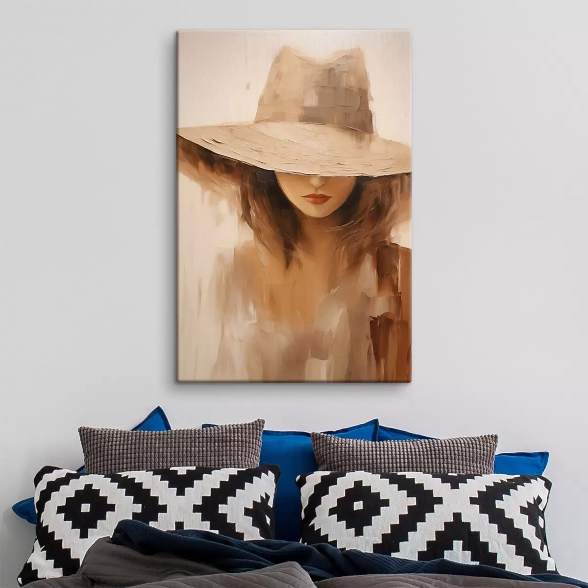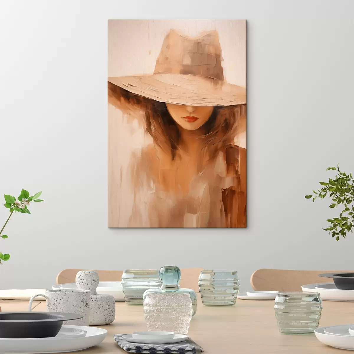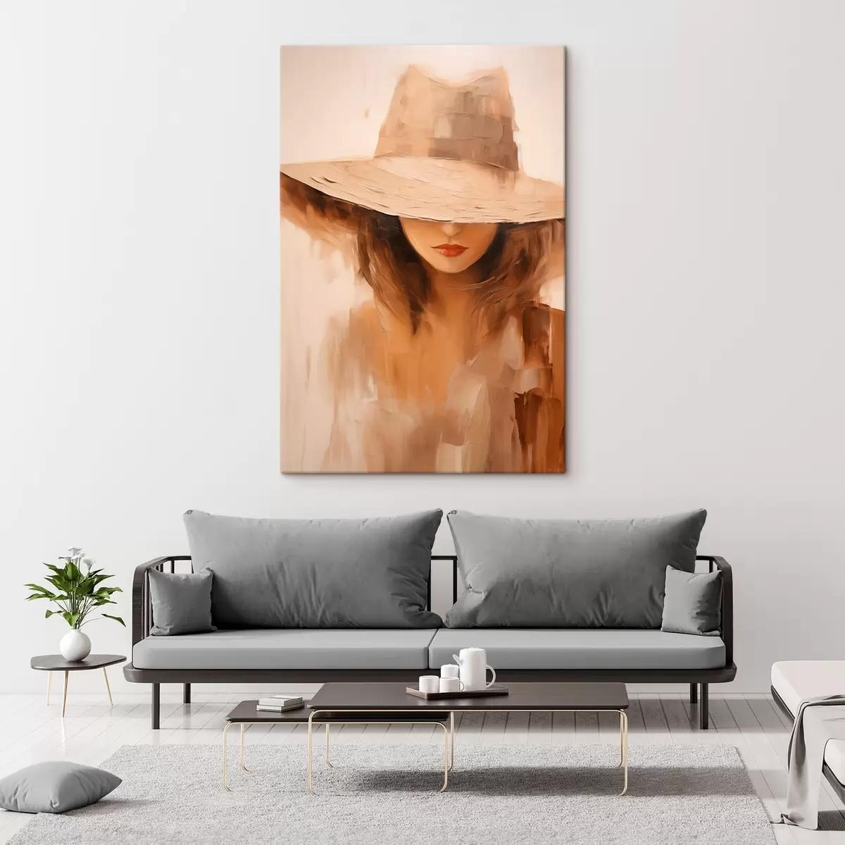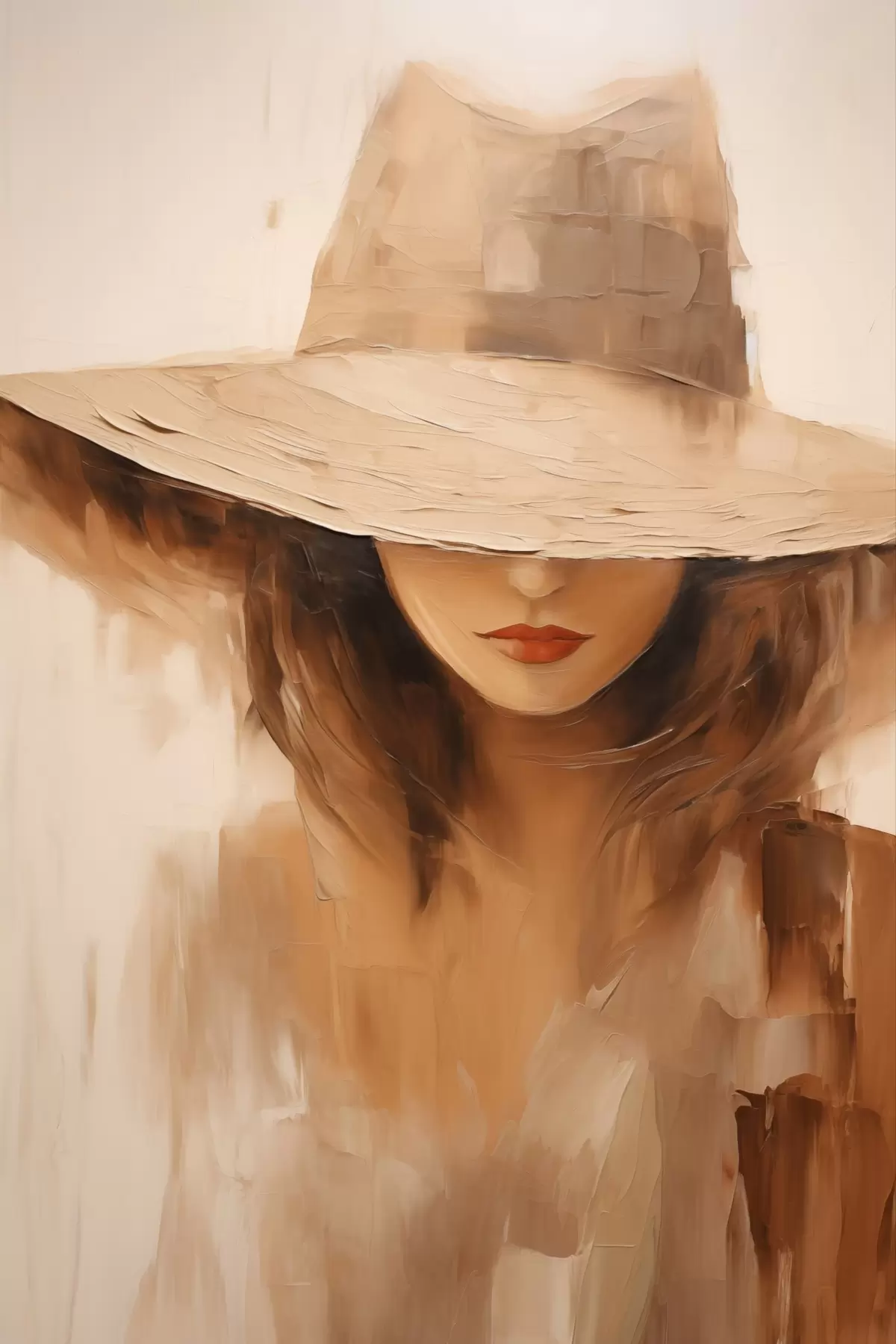Картина Жінка в капелюсі, намальована теплими абстрактними мазками Арт. s47312