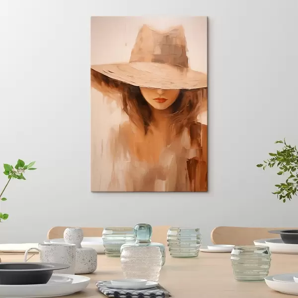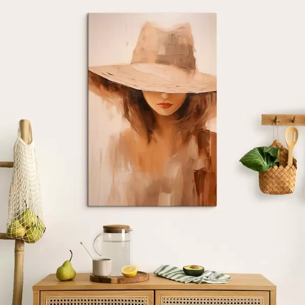 Картина Жінка в капелюсі, намальована теплими абстрактними мазками Арт. s47312