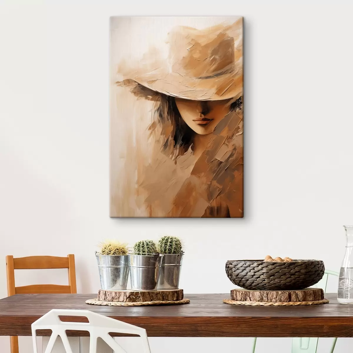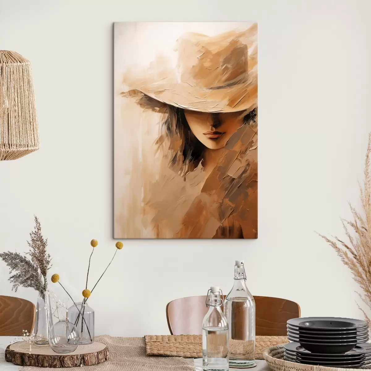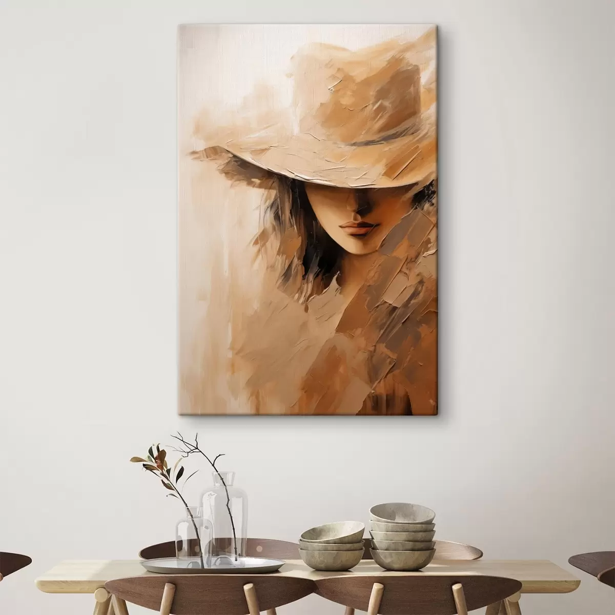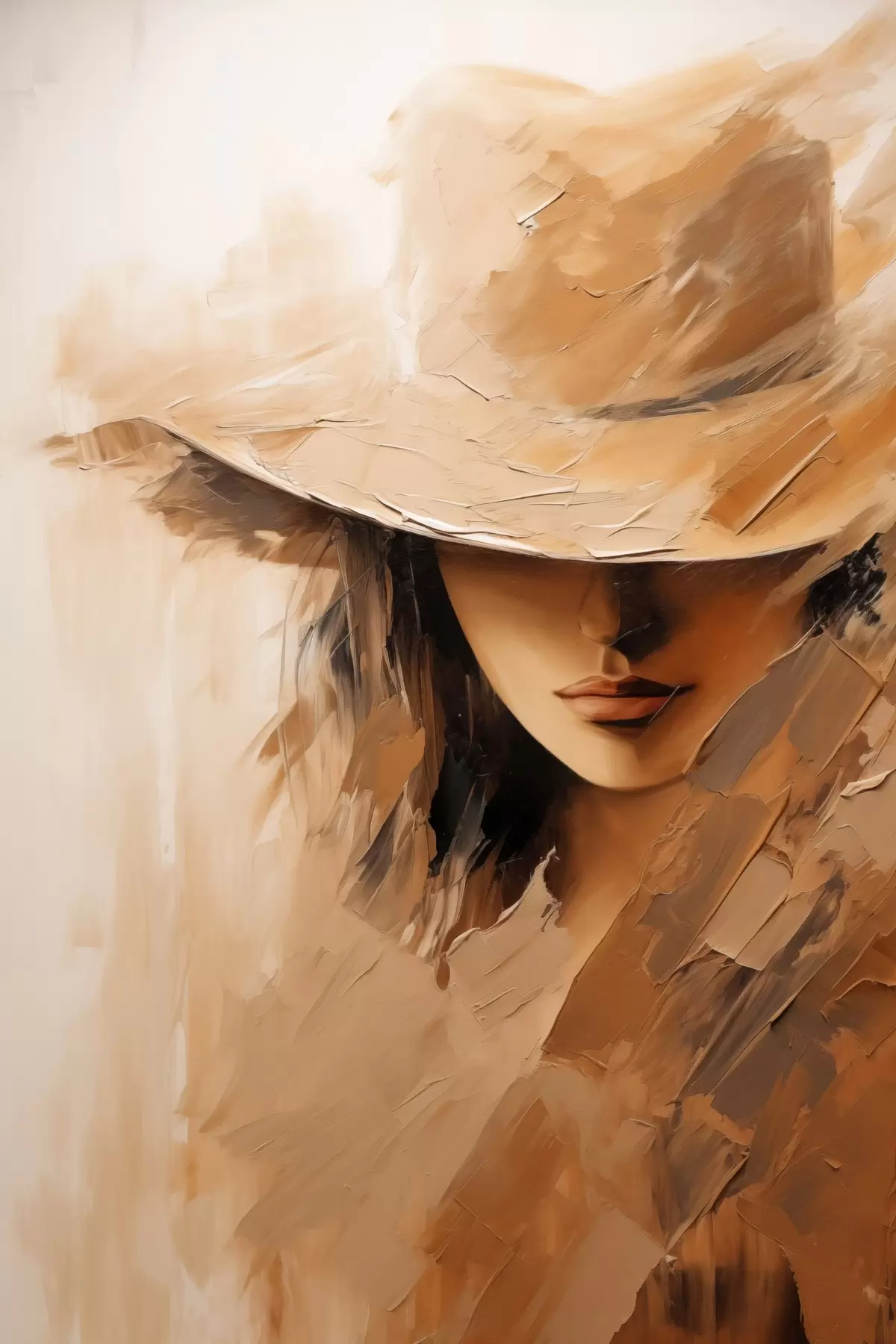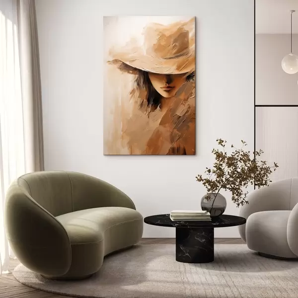 Картина Жінка в капелюсі, намальована теплими мазками з текстурою s47315