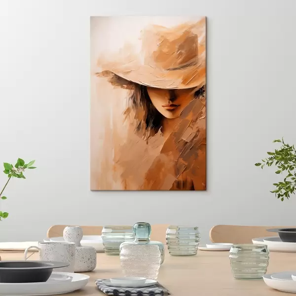 Картина Жінка в капелюсі, намальована теплими мазками з текстурою Арт. s47315