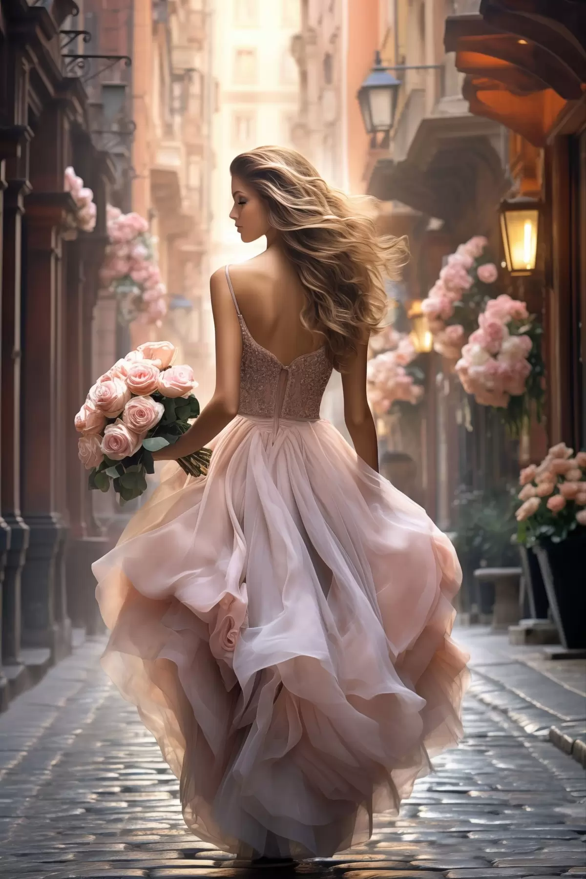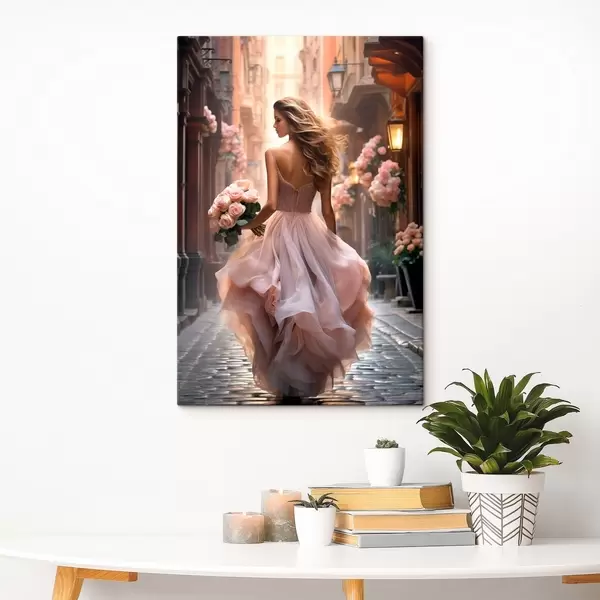 Картина Жінка в рожевій сукні йде вулицею Арт. s47316