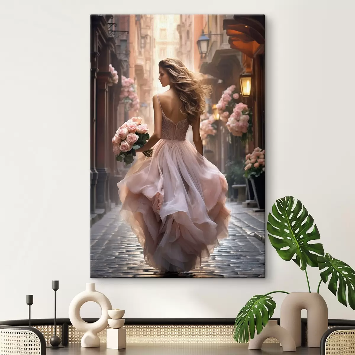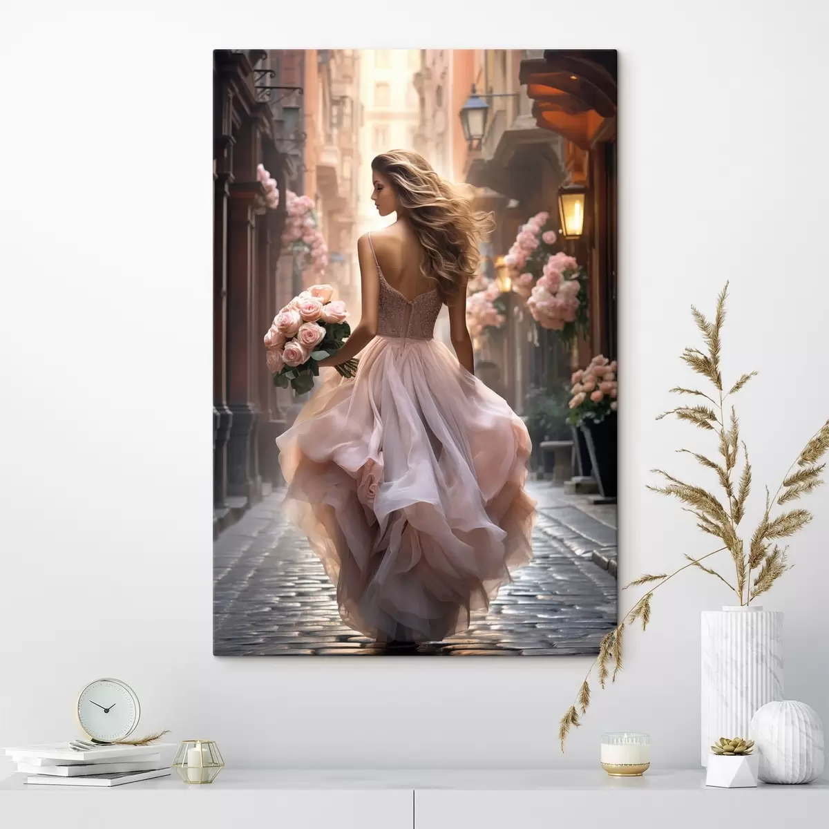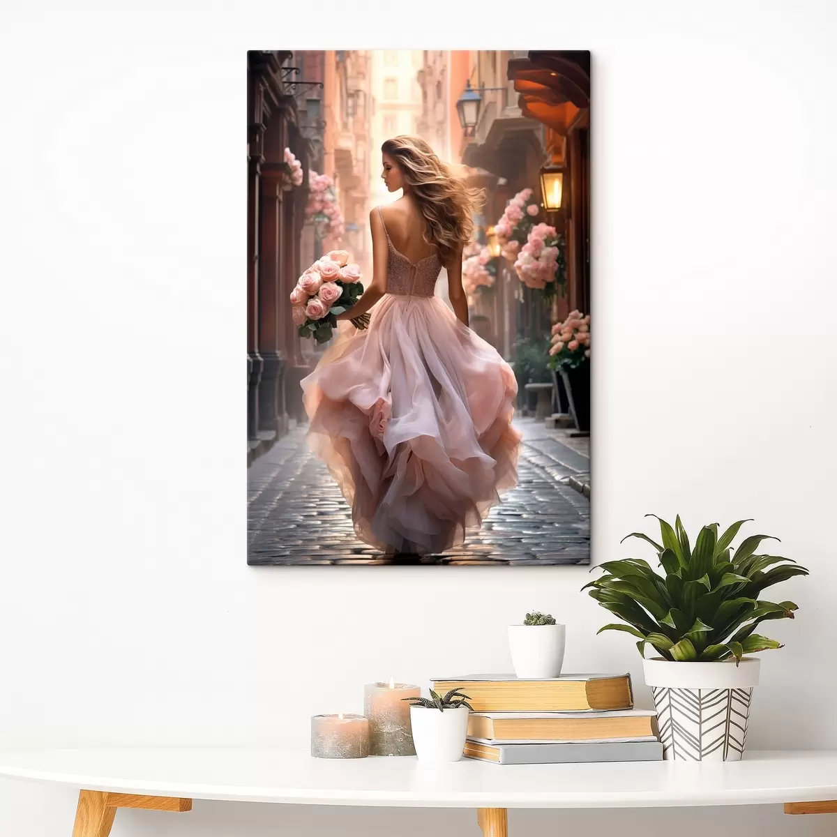 Картина Жінка в рожевій сукні йде вулицею s47316