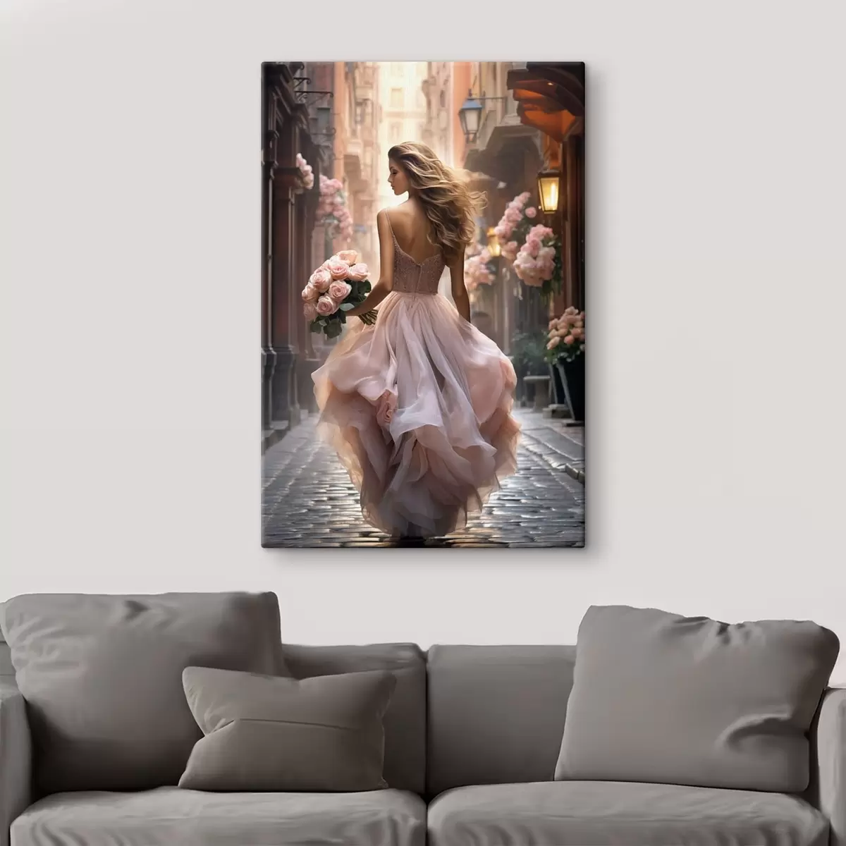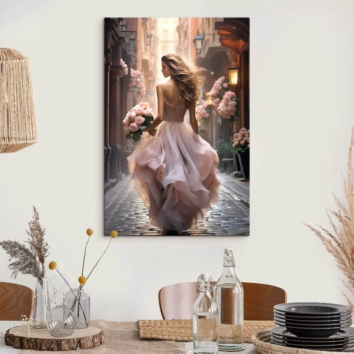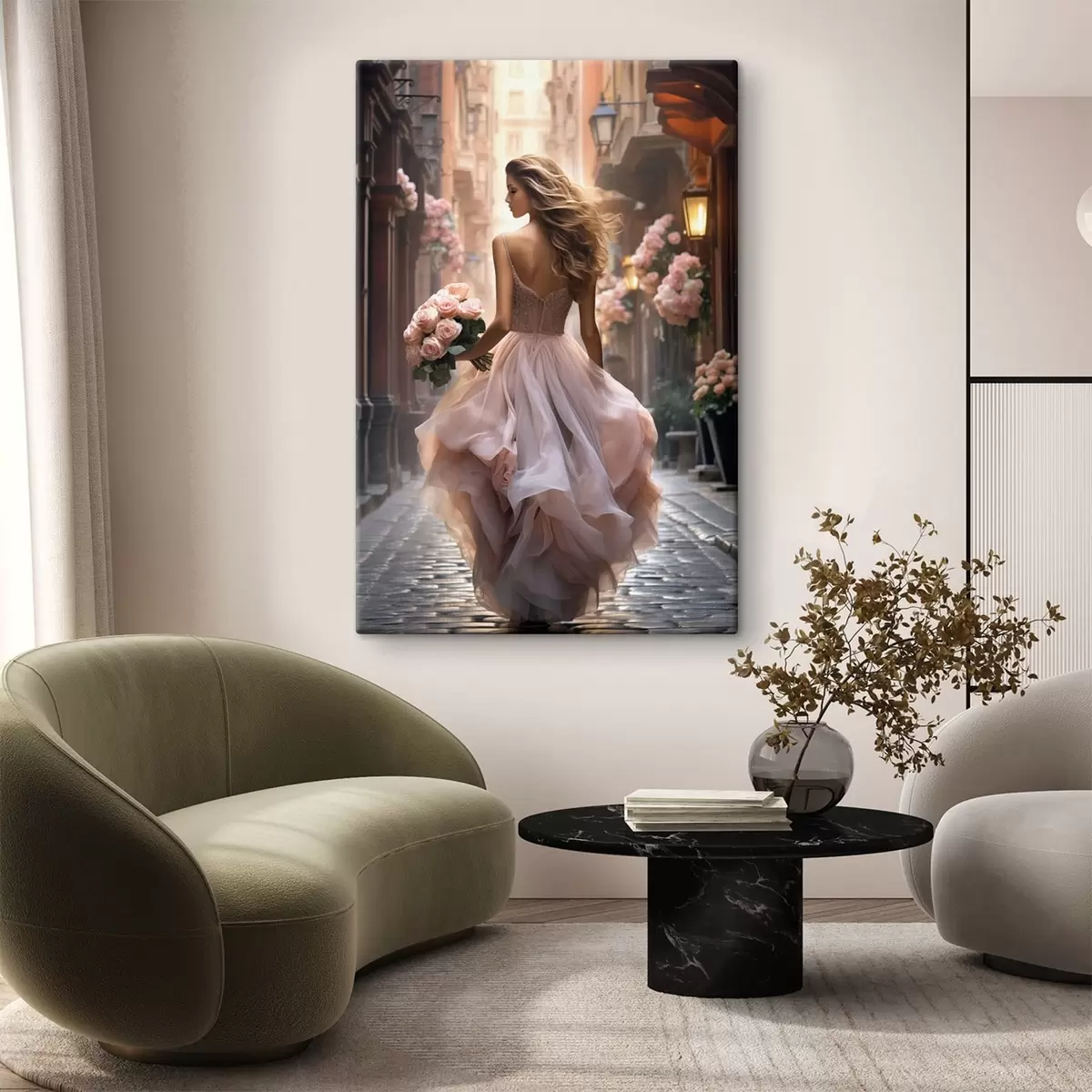 Картина Жінка в рожевій сукні йде вулицею s47316