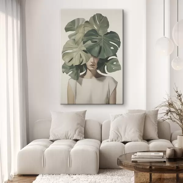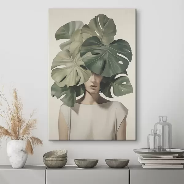 Картина Абстрактний портрет дівчини з листям монстери Арт. s47336