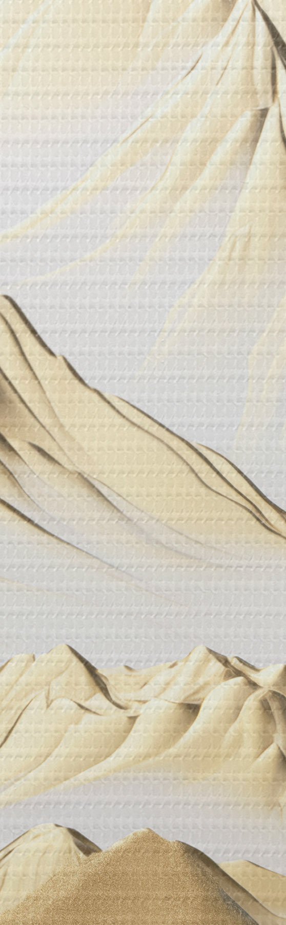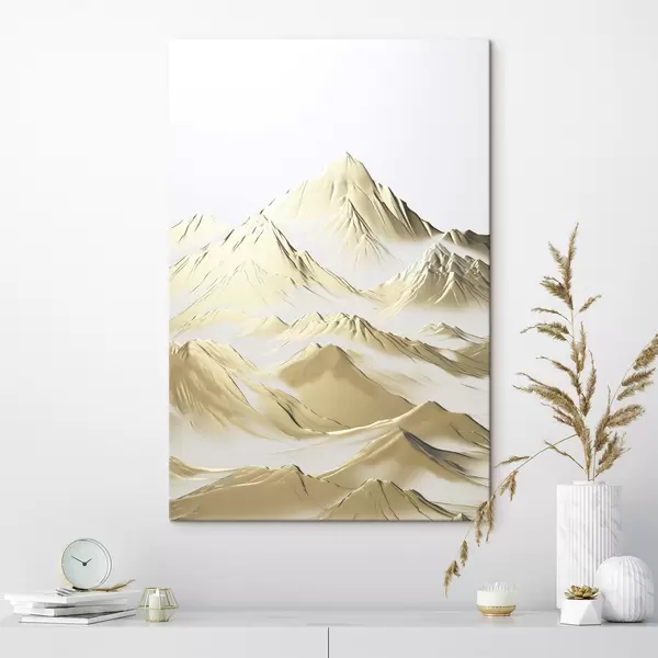Картина Краєвид жовтих, засніжених гір з гострими вершинами і глибокими долинами під світлим небом Арт. s47421