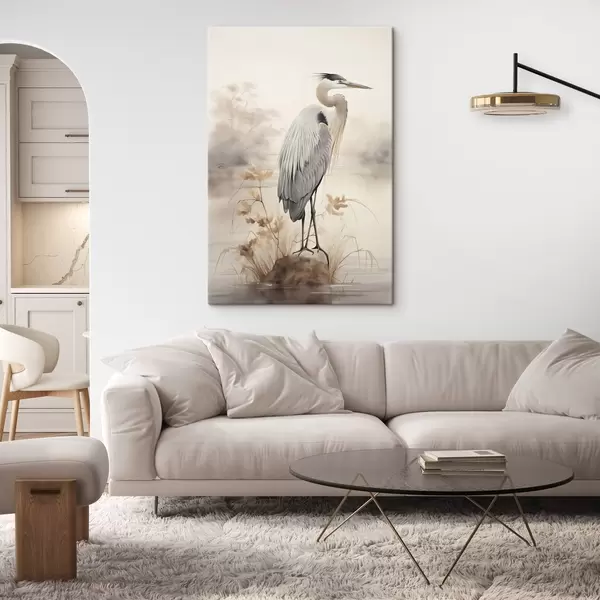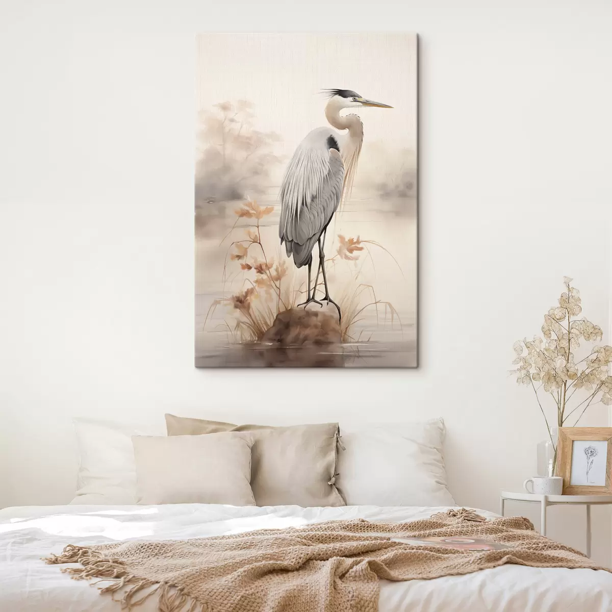 Картина Чапля стоїть на камені в озері, на тлі високої трави та дерев Арт. s47426