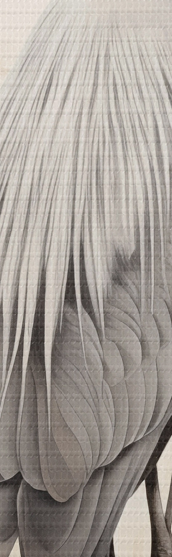 Картина Чапля стоїть на камені в озері, на тлі високої трави та дерев s47426
