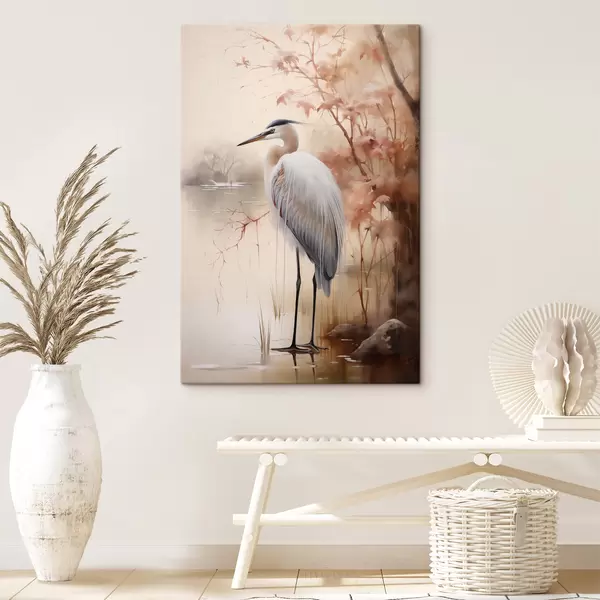 Картина Чапля стоїть на камені в озері, на тлі високої трави та дерев Арт. s47427