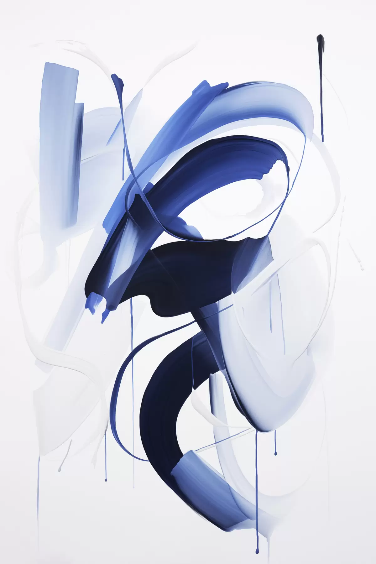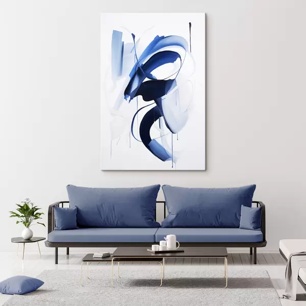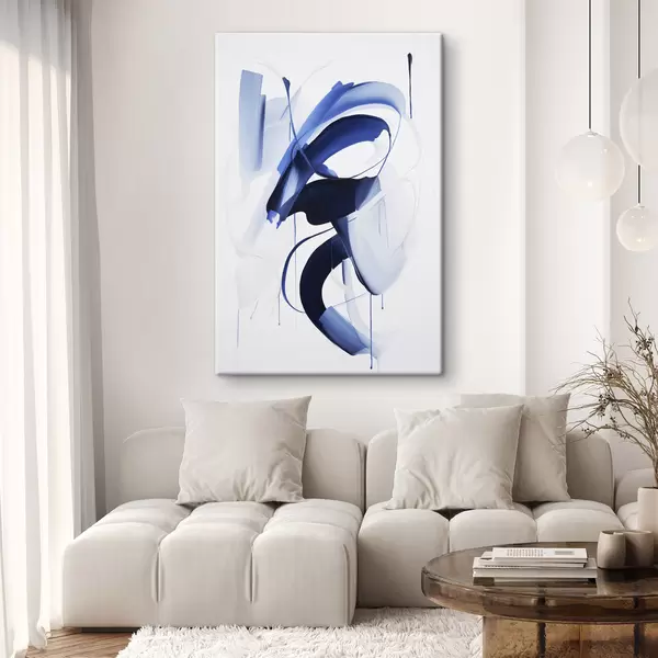 Картина Абстрактні сині форми, схожі на мазки пензлем, з плавними лініями та кривими на білому тлі, сучасне мистецтво s47428