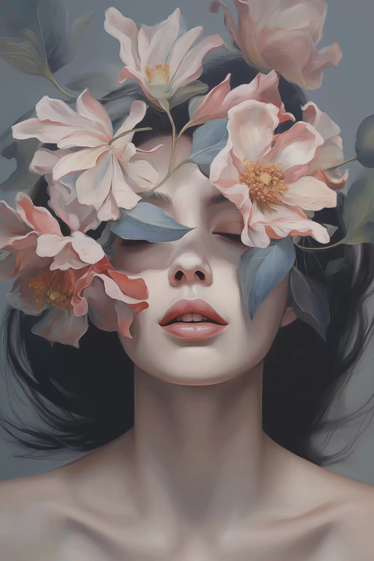 Картина Абстрактний жіночий портрет з квітами Арт. s47488