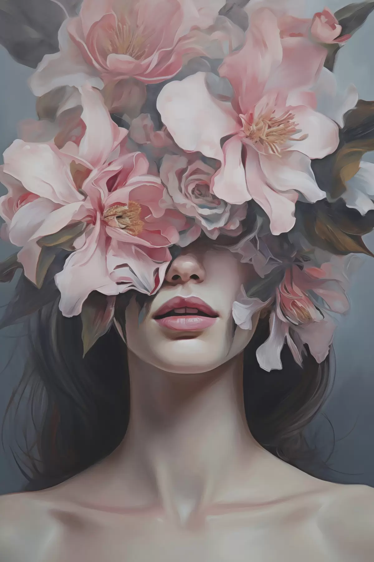Картина Сюрреалістичний портрет жінки з квітами Арт. s47489