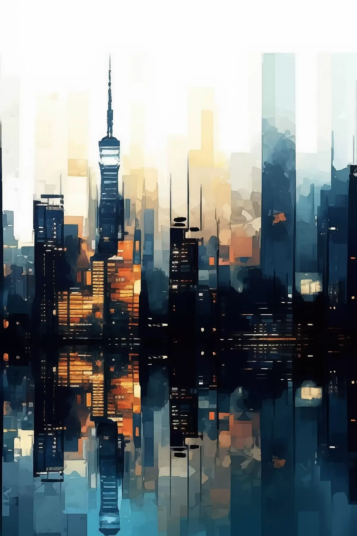 Картина Вечірній захід сонця у великому місті Арт. s47677