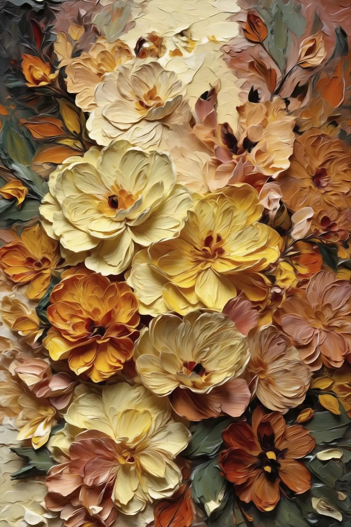 Картина Пишна композиція з яскравих квітів у теплих відтінках Арт. s47760