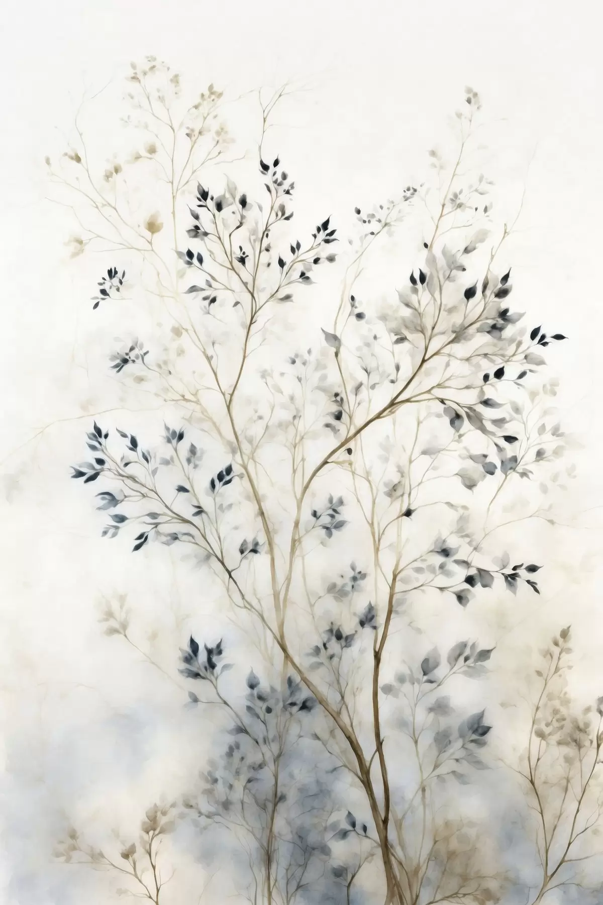 Картина Тонкі гілки з дрібним листям на світлому тлі s47763