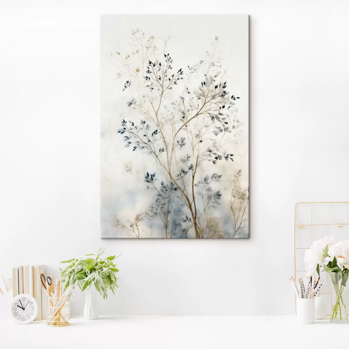 Картина Тонкі гілки з дрібним листям на світлому тлі Арт. s47763