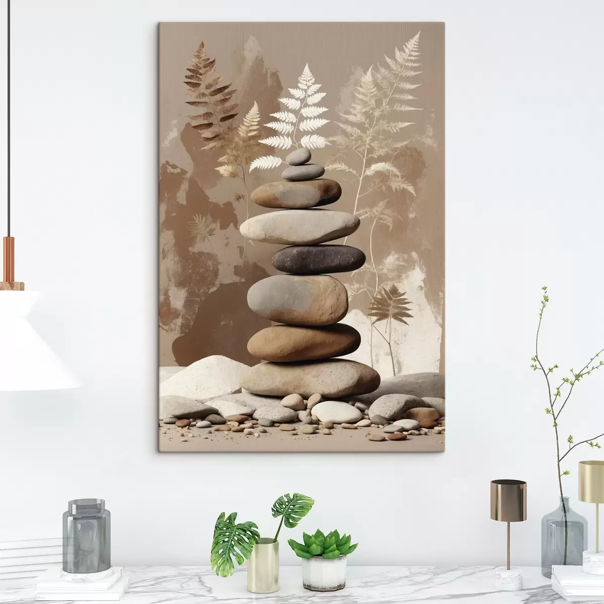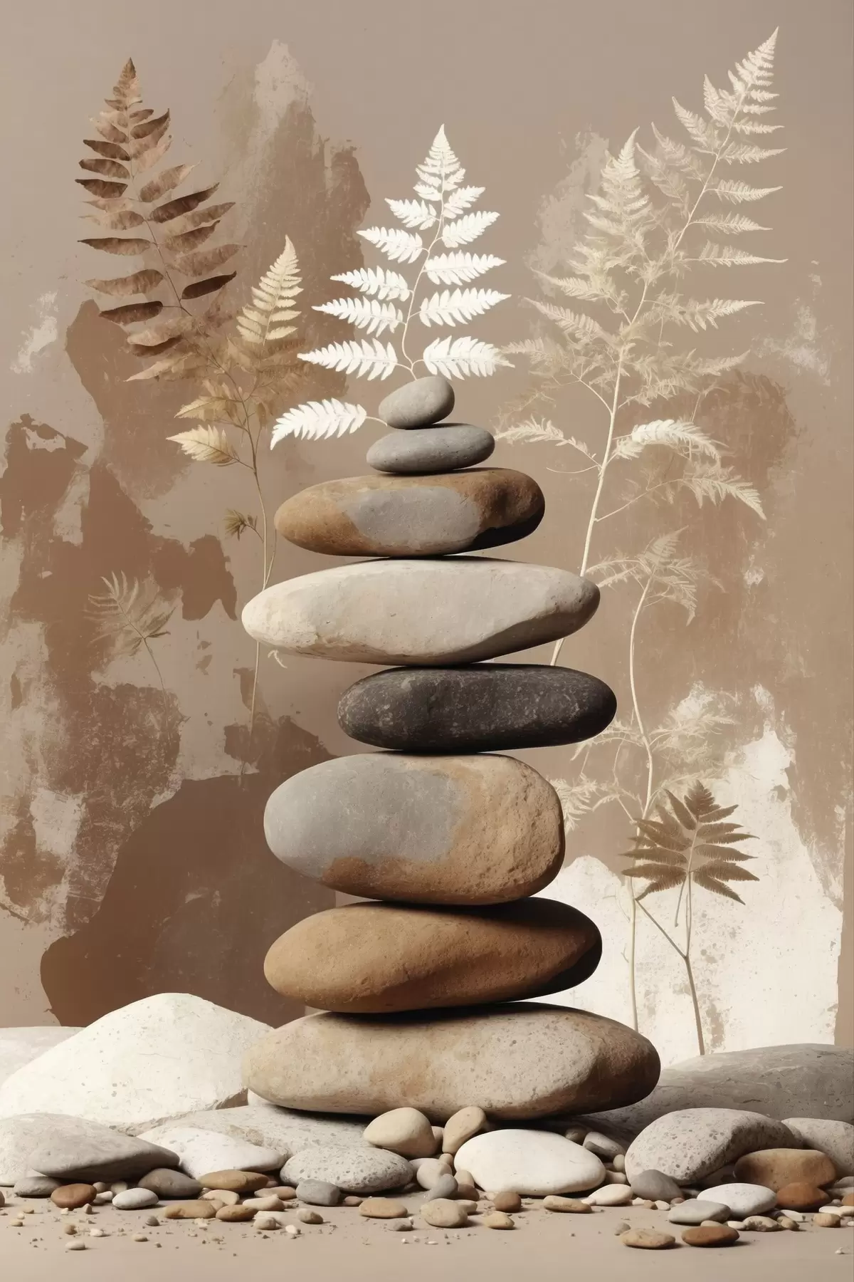 Картина Стіс гладких каменів на тлі рослинності s47764