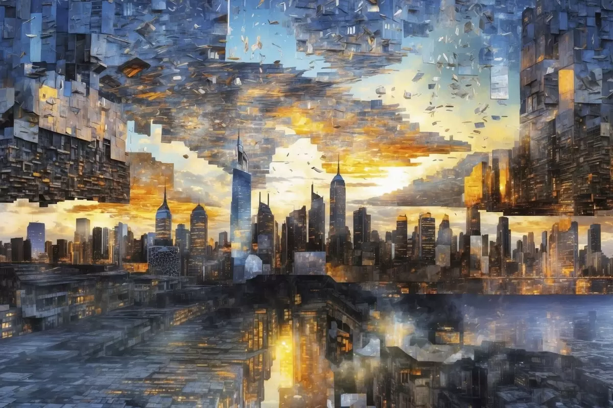 Картина Фантастичний міський пейзаж з фрагментованим небом s47768
