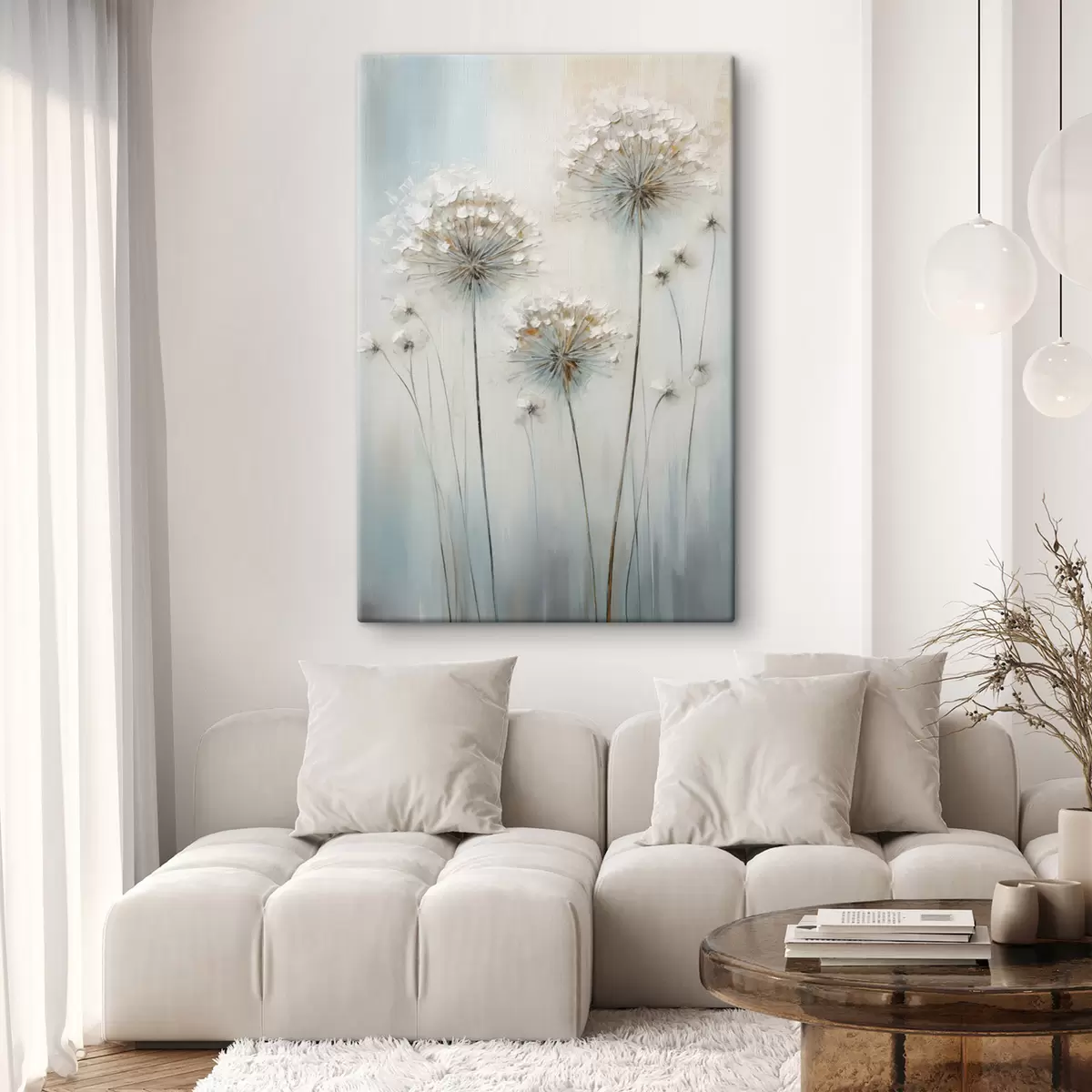 Картина Текстурований стиль малювання кульбаб на м'якому блакитно-білому тлі s47855