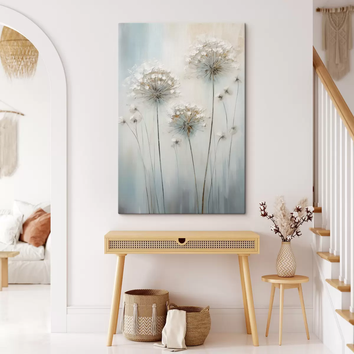 Картина Текстурований стиль малювання кульбаб на м'якому блакитно-білому тлі Арт. s47855