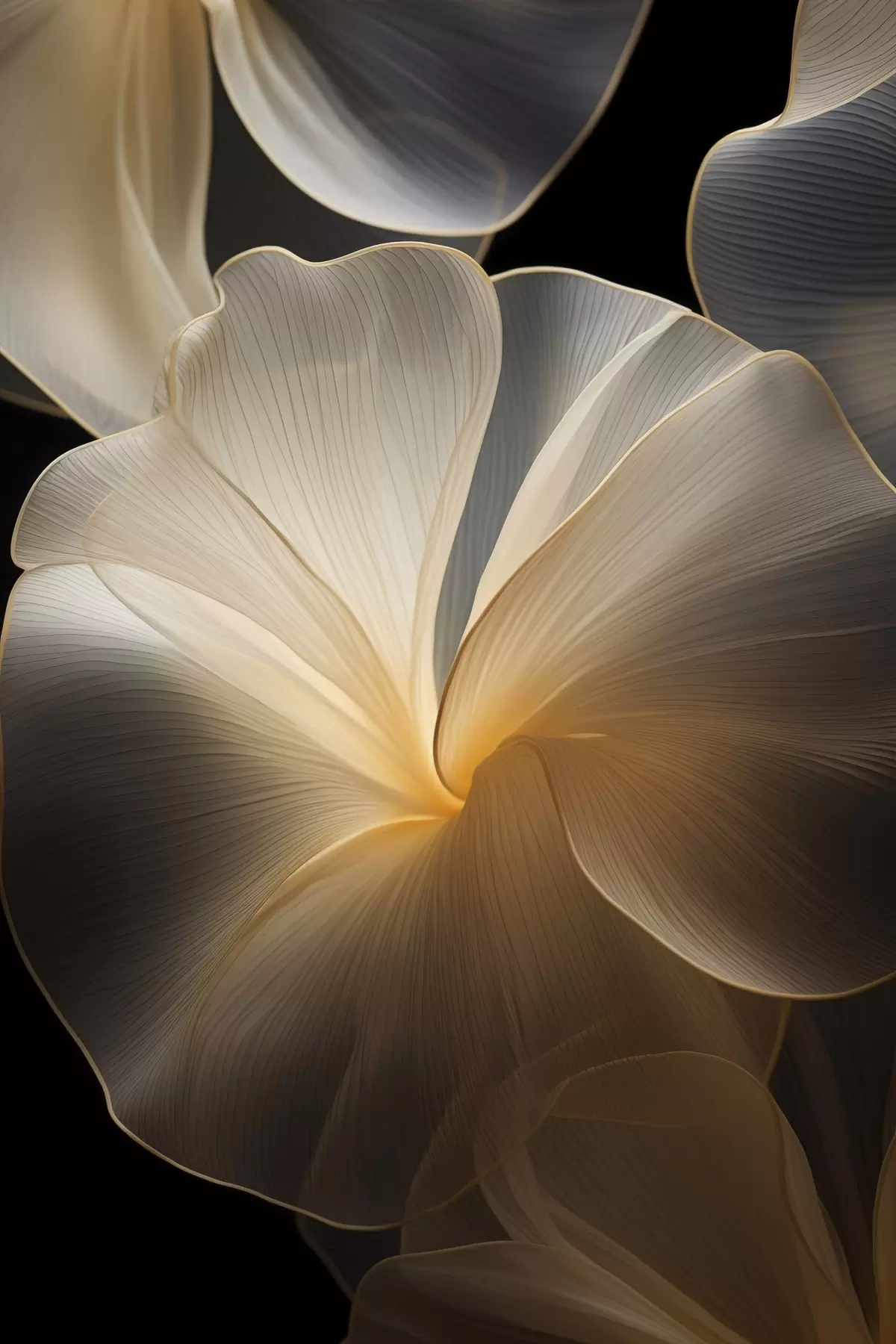 Картина Абстрактні прозорі пелюстки з витонченими лініями на темному тлі s47860