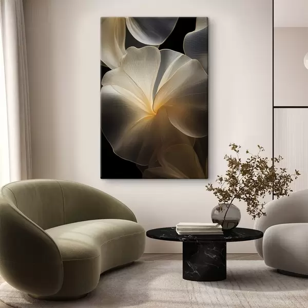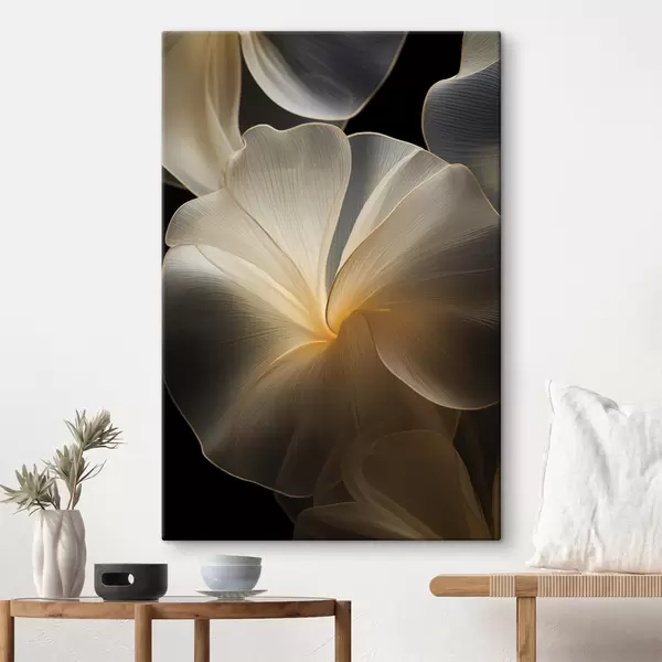 Картина Абстрактні прозорі пелюстки з витонченими лініями на темному тлі Арт. s47860