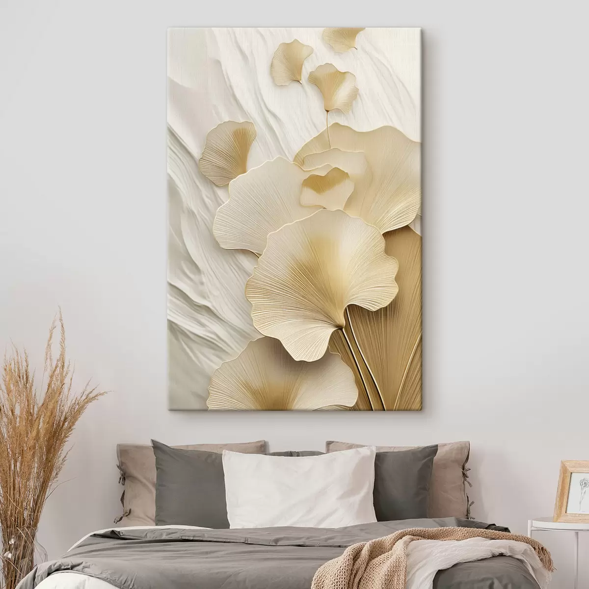 Картина Абстрактні листя гінкго на текстурованому світлому тлі, елегантна та абстрактна композиція Арт. s47868