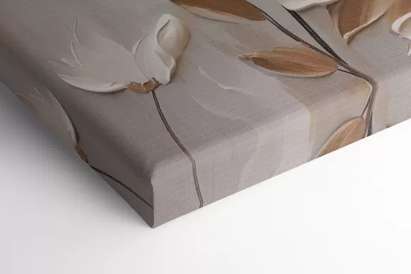 Картина Абстрактні білі квіти з фактурними пелюстками на нейтральному тлі з тонким імітуванням мазків пензля. s47873