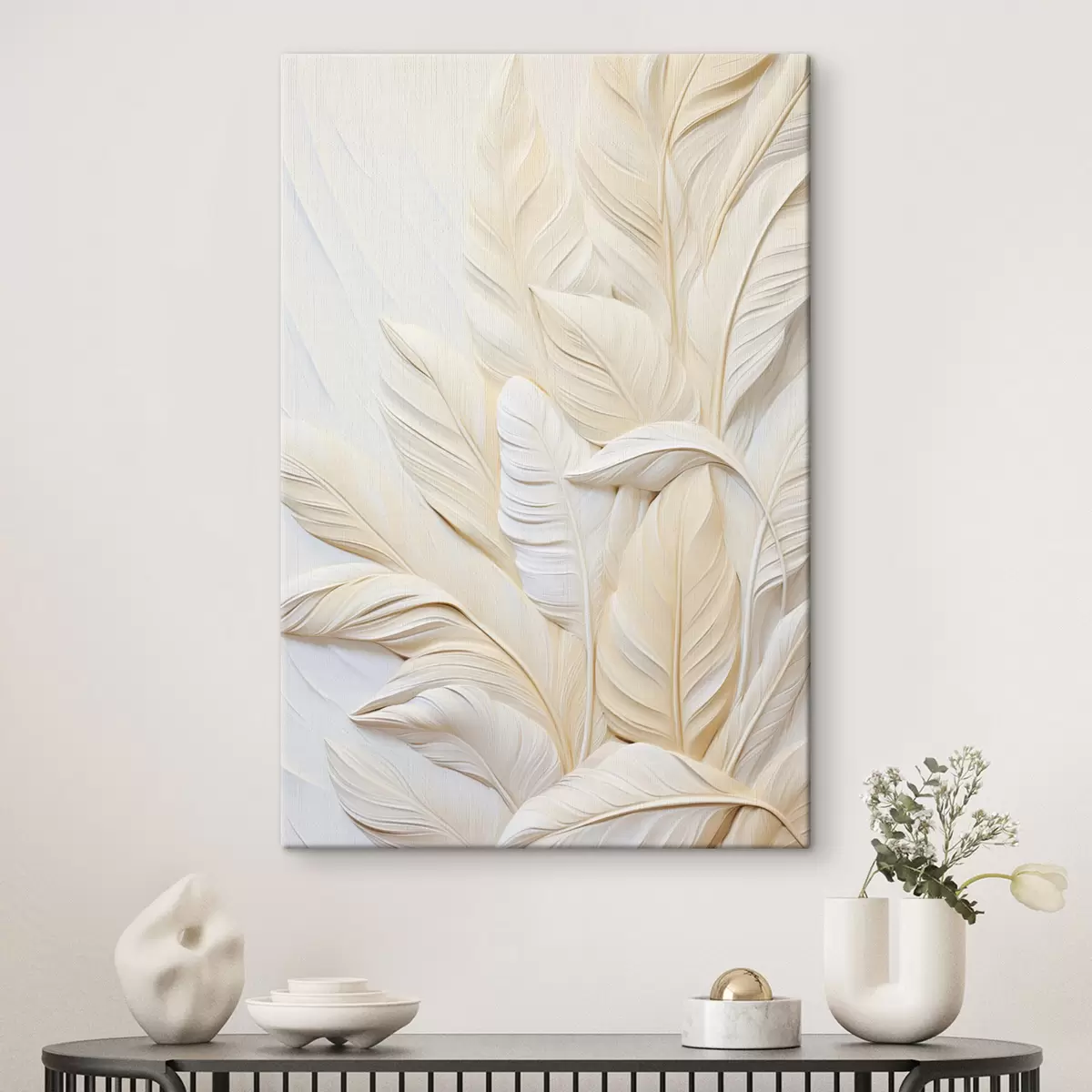 Картина Кремові пір'я, що перекривають одне одного, на м'якому, світлому тлі s47883