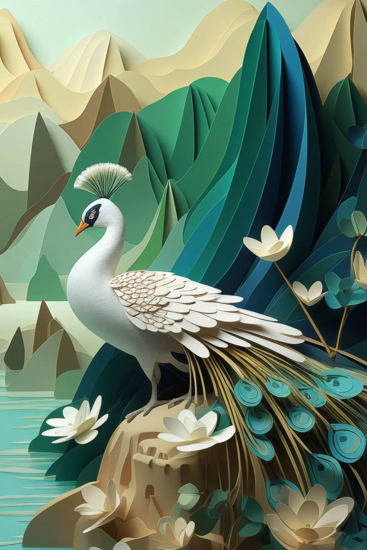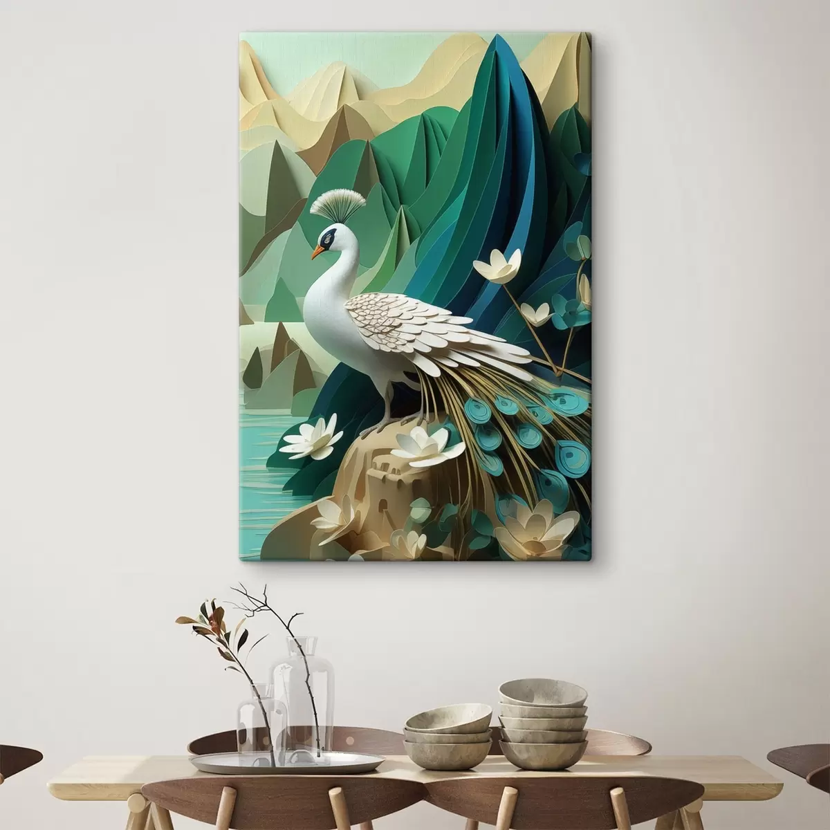 Картина Павич на зеленому тлі s47901
