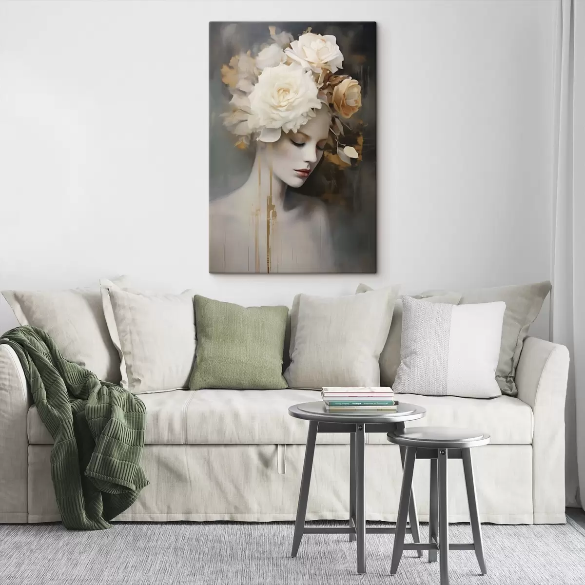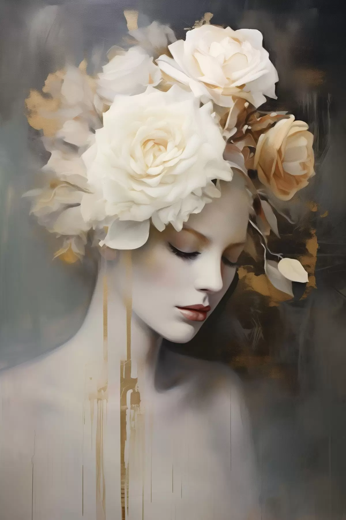 Картина Жіночий портрет з білими квітами Арт. s47904