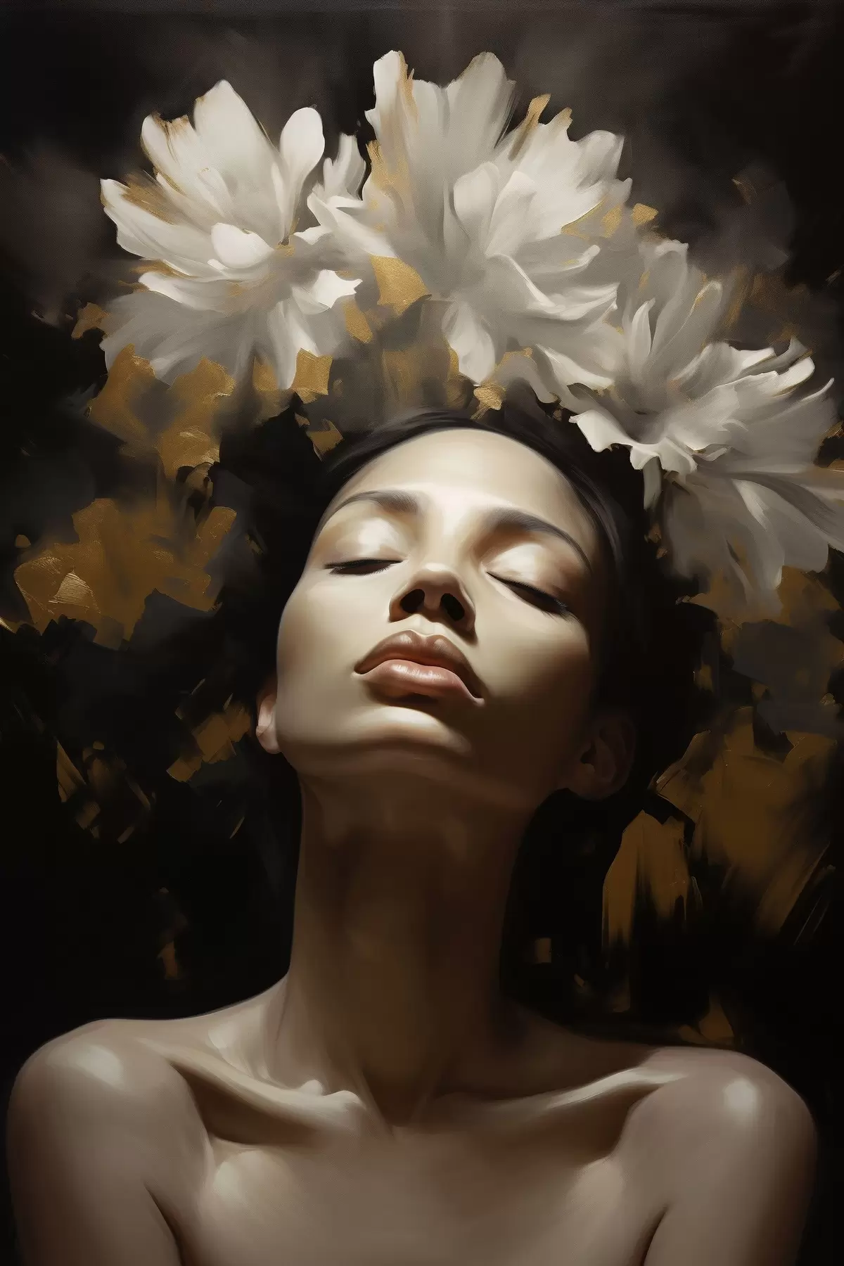 Картина Жіночий портрет з білими квітами Арт. s47918