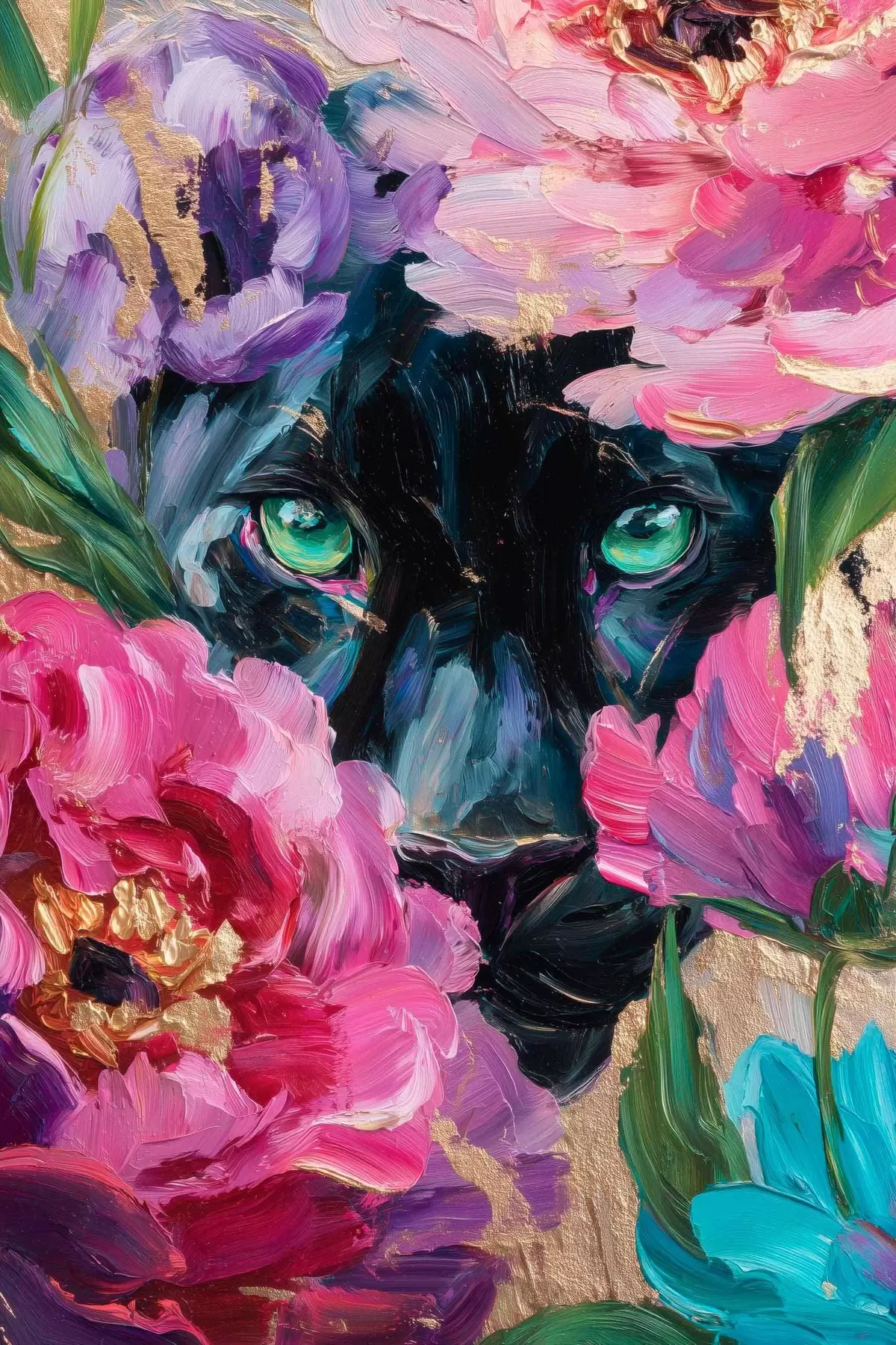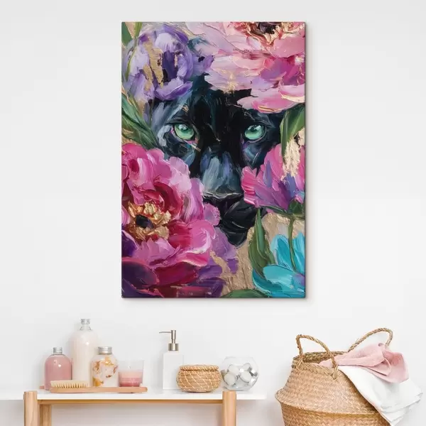Картина чорна пантера визирає з-поміж півоній Арт. s47936