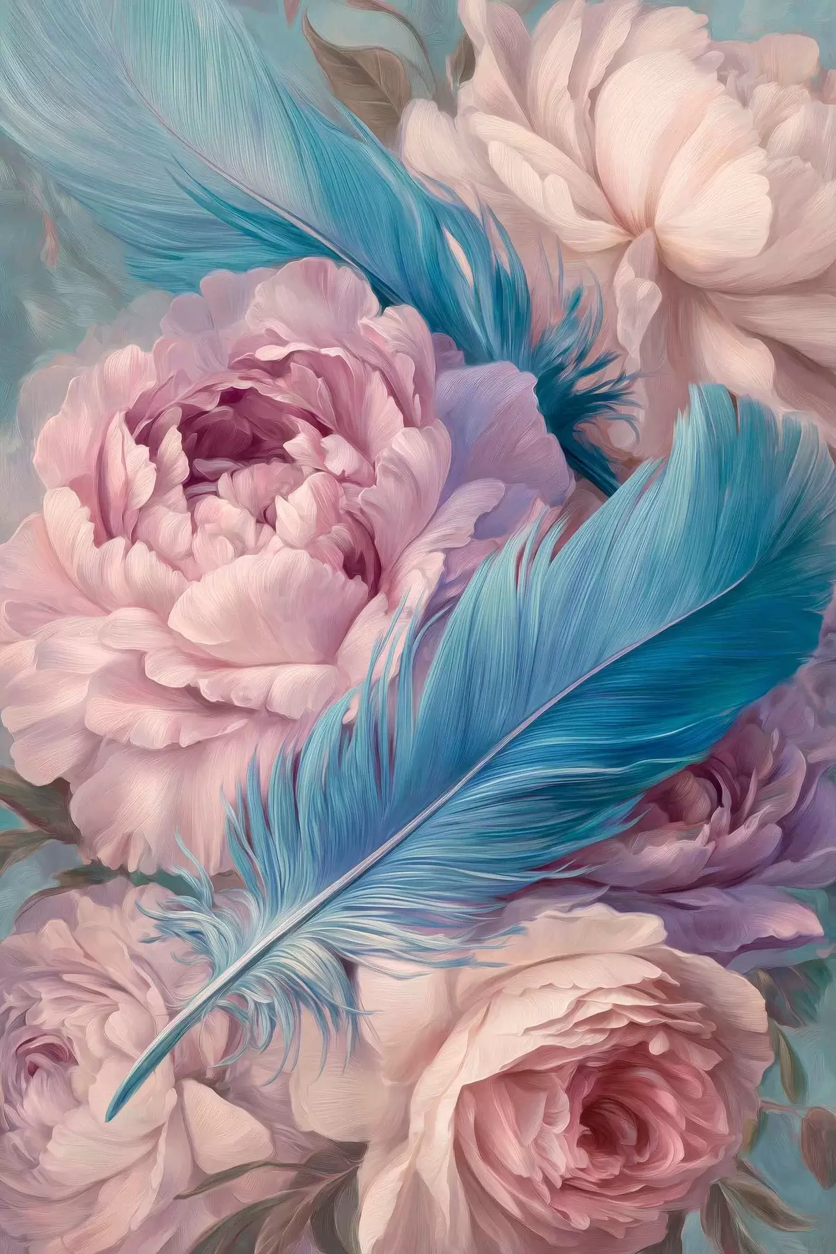 Картина пір'я серед півоній s47940