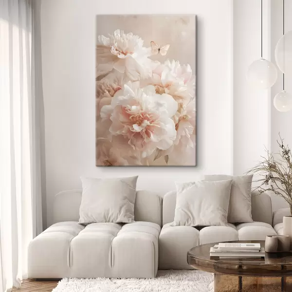 Картина пишні рожеві півонії з метеликом Арт. s47954