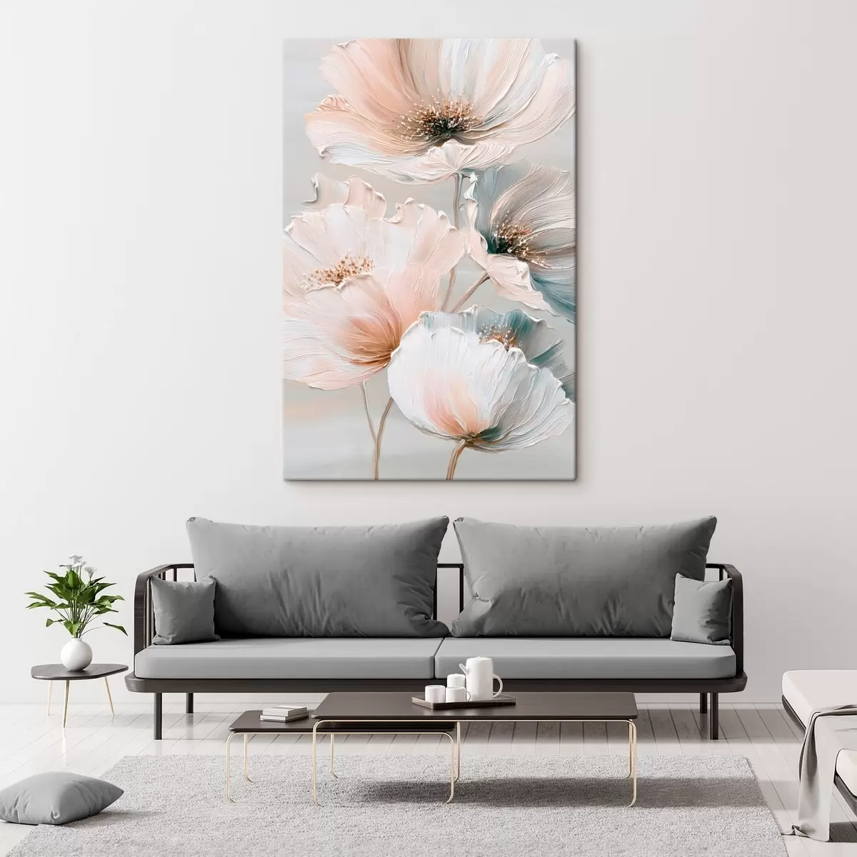Картина Квіткова композиція з фактурними мазками в бежево-рожевій палітрі s47961