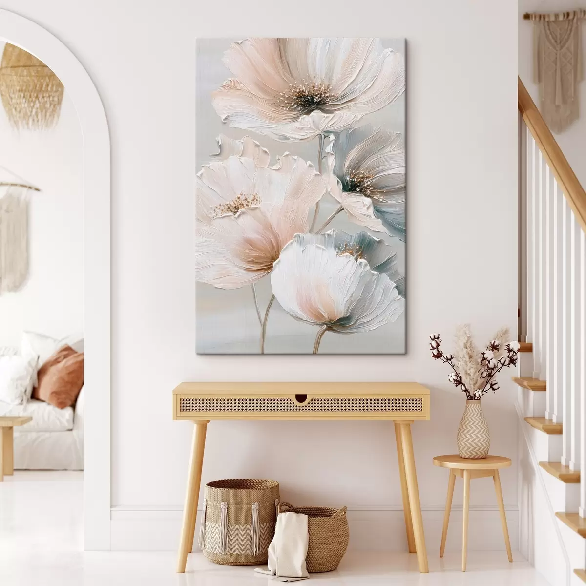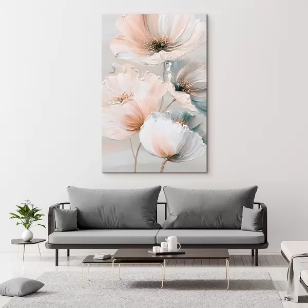 Картина Квіткова композиція з фактурними мазками в бежево-рожевій палітрі Арт. s47961