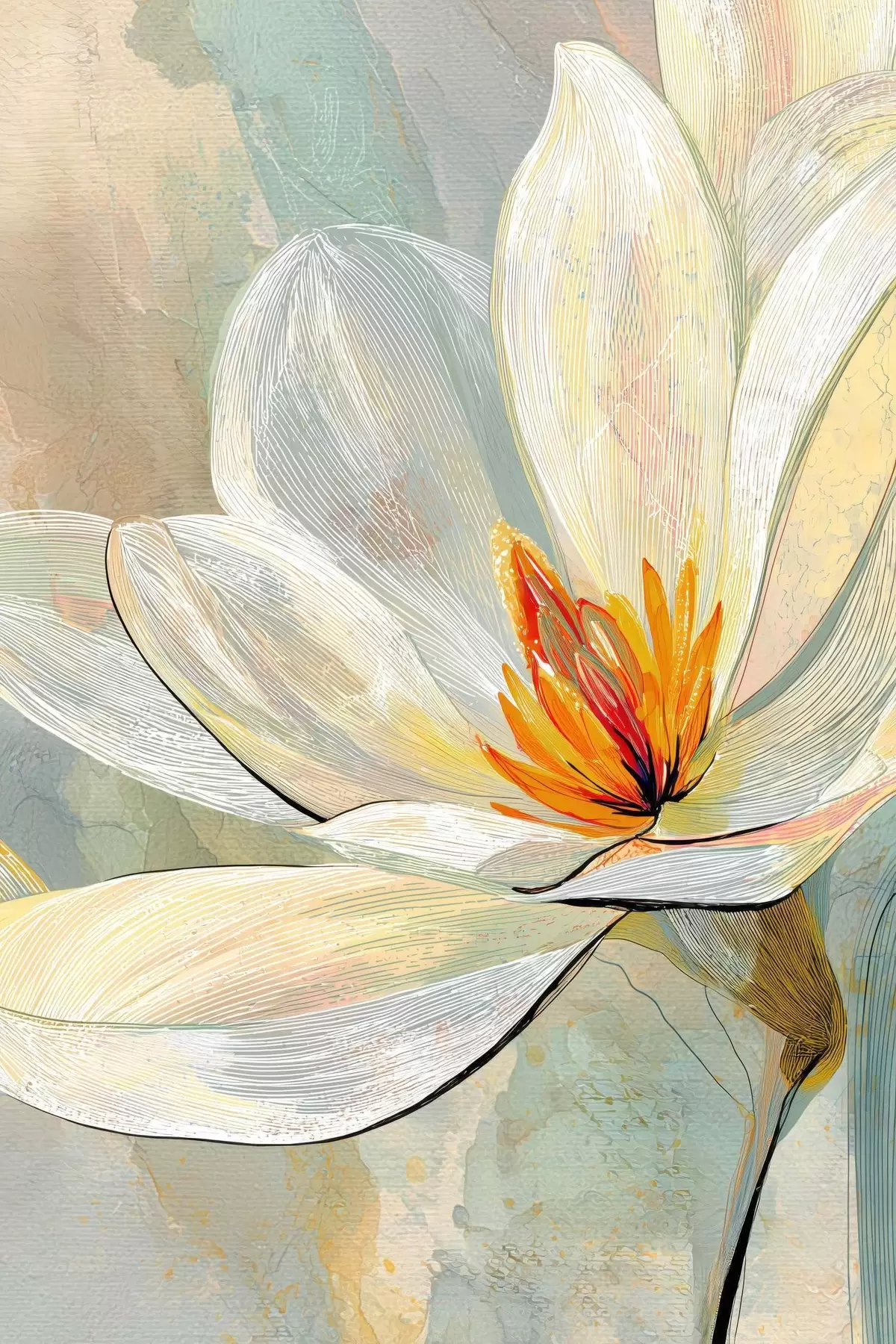 Картина Абстрактні магнолії в пастельній палітрі з акцентом на лінійній графіці Арт. s47970