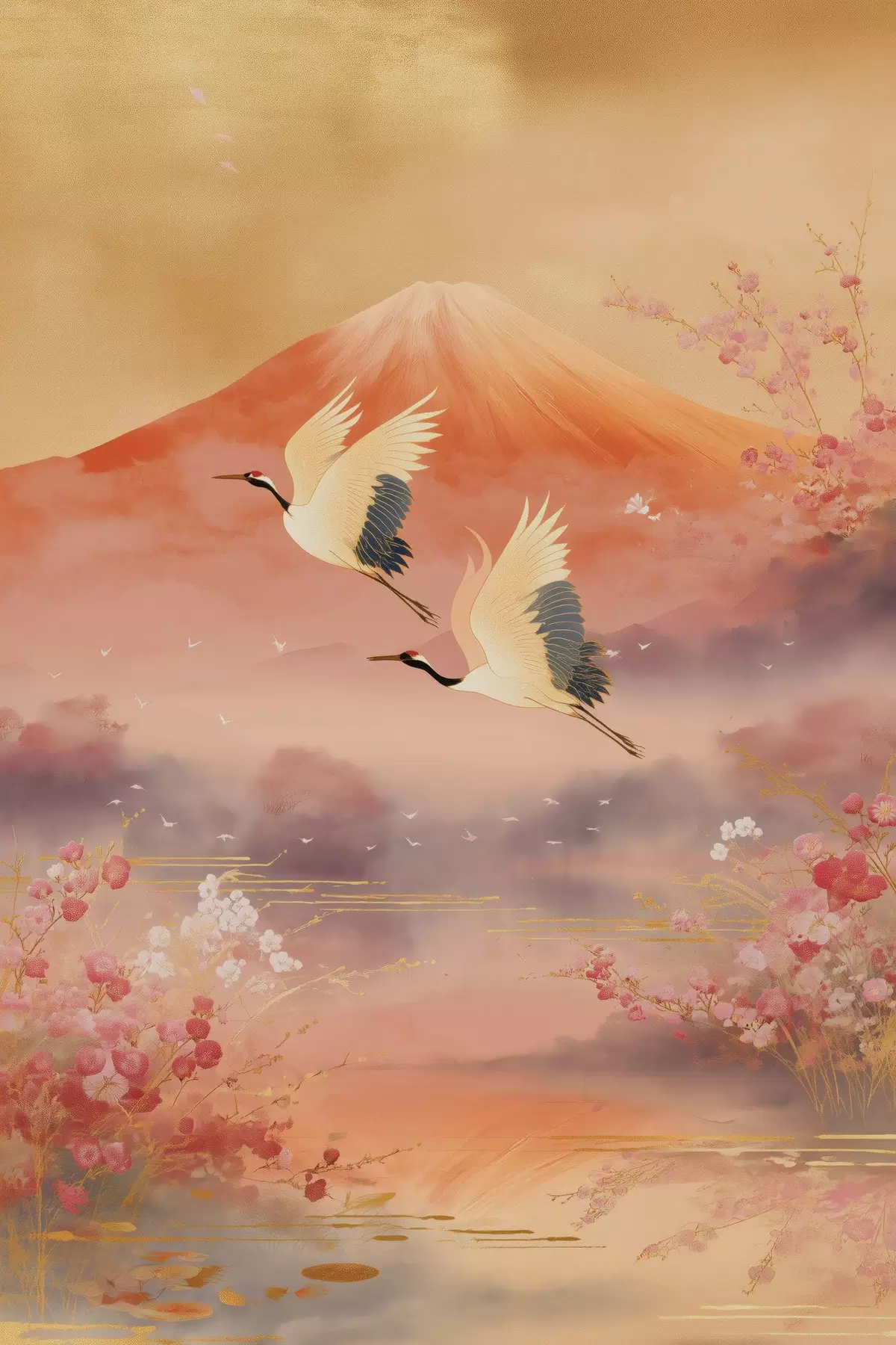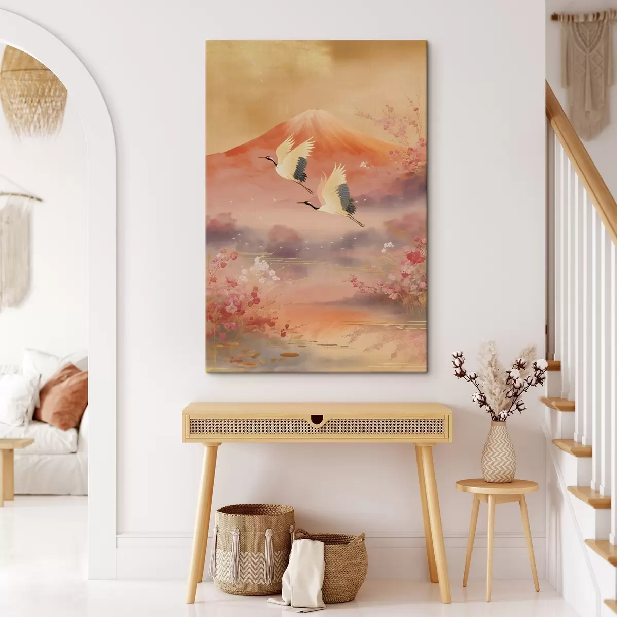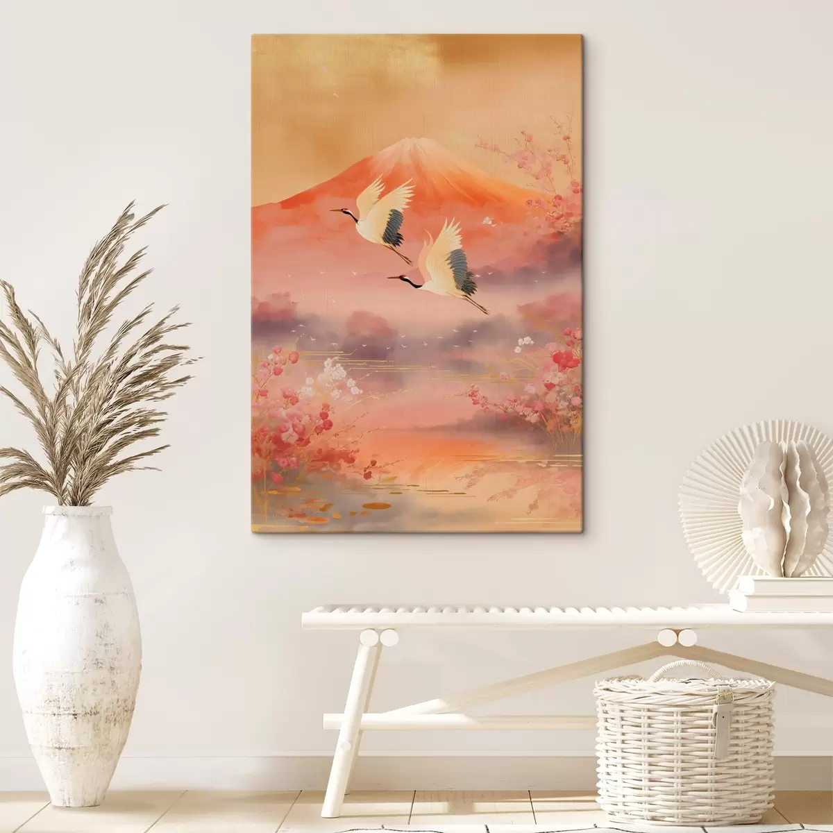 Картина Традиційний східний мотив з квітами сакури та журавлями Арт. s47991
