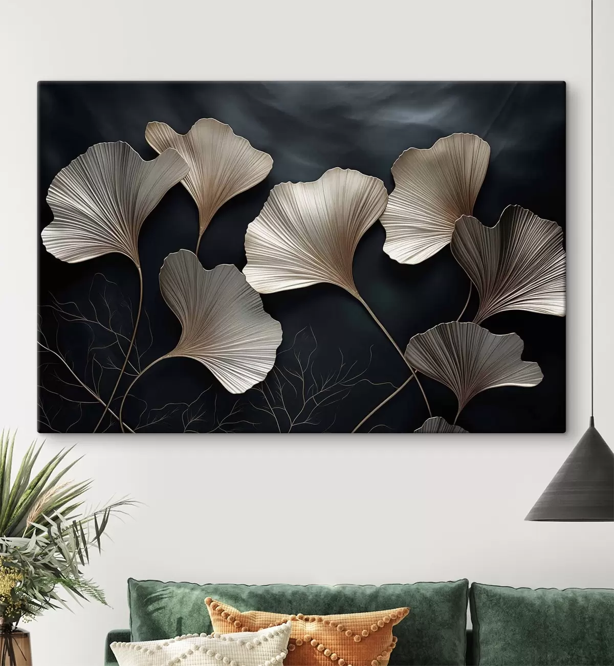 Картина Листя гінкго на темному тлі Арт. s48008