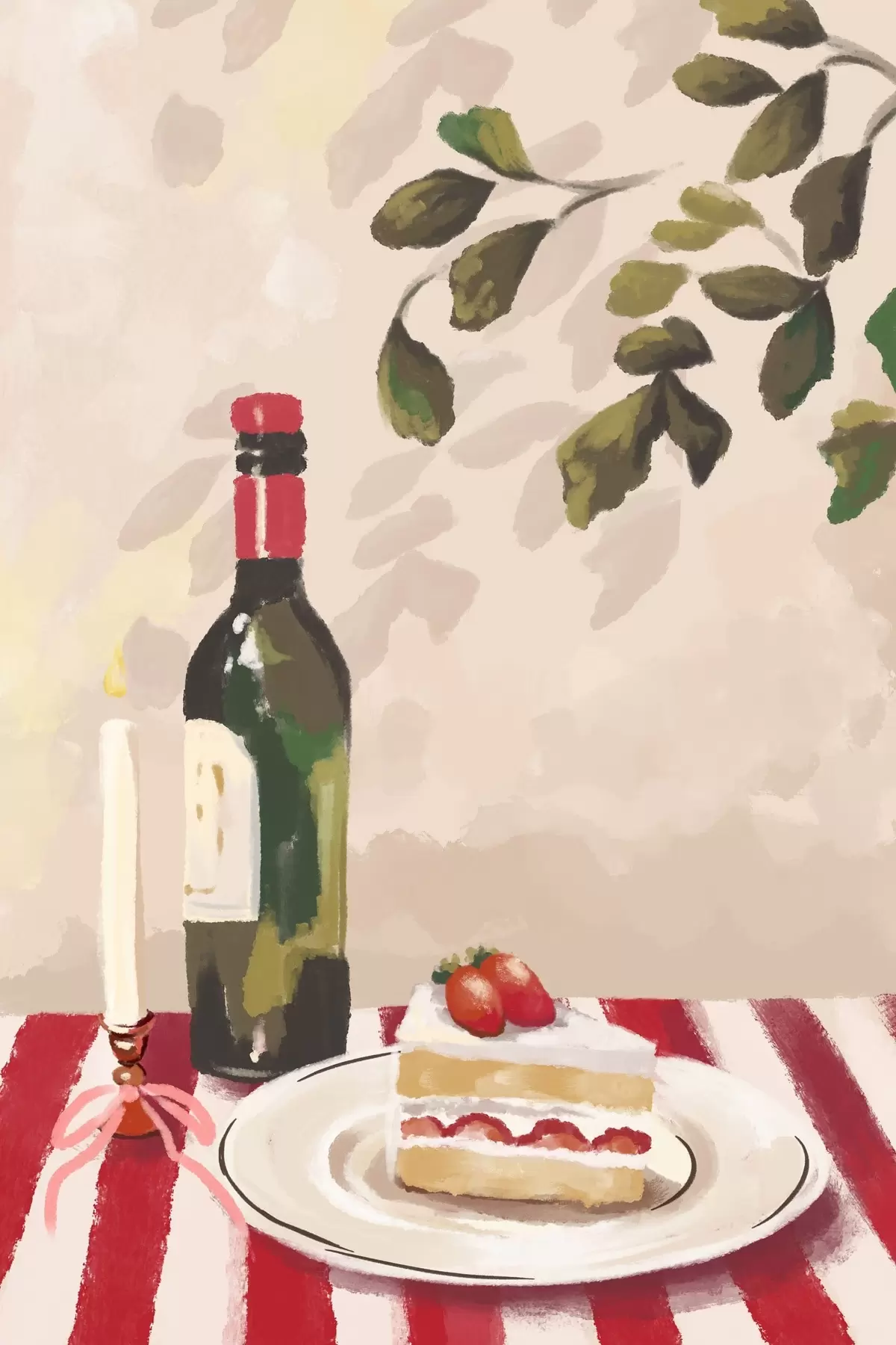 Картина Натюрморт з вином, свічкою та тортом Арт. s48024