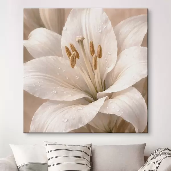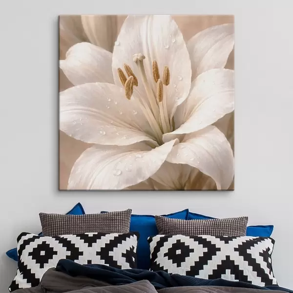 Картина Крупний план білої квітки з крапельками води Арт. s48028