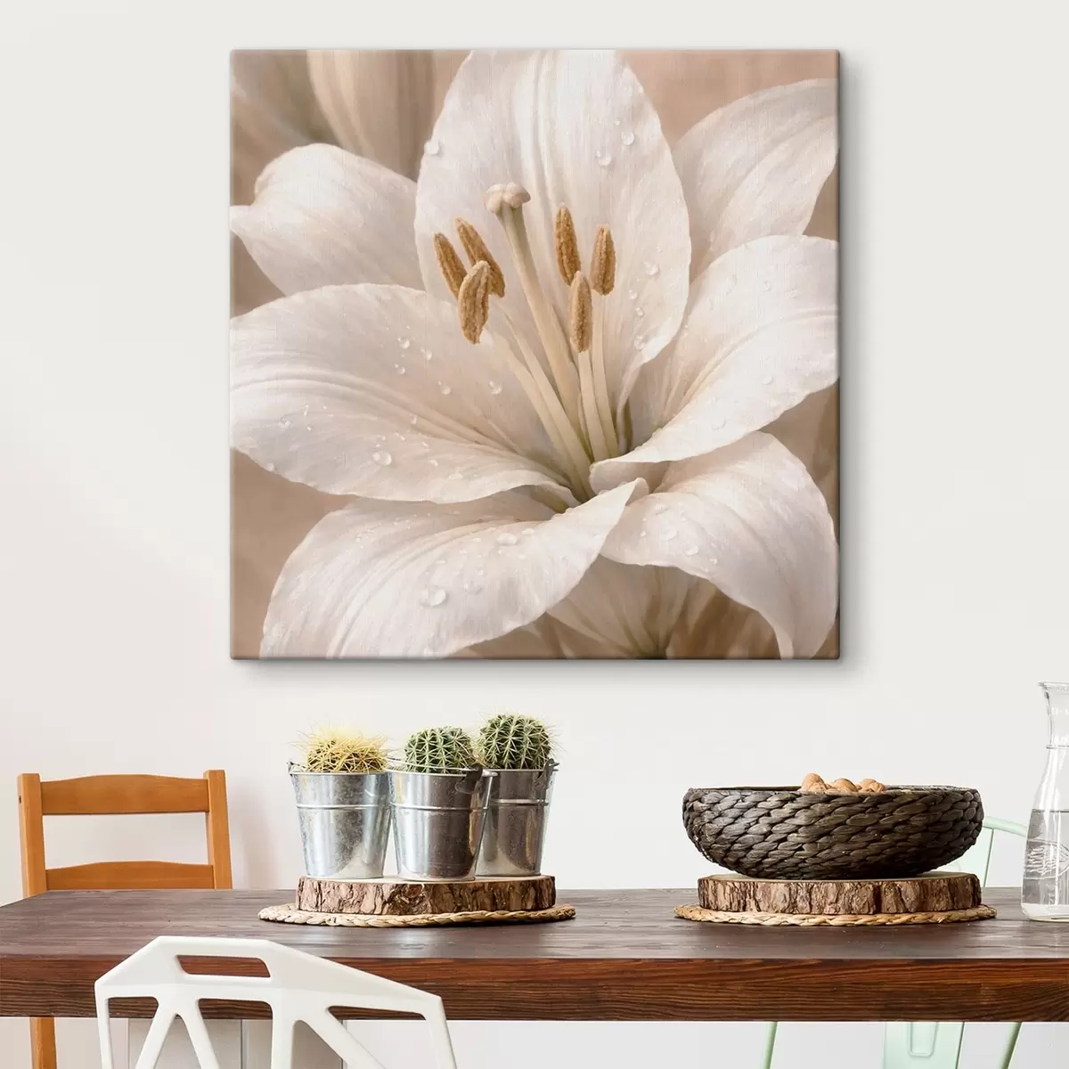 Ми не рекомендуємо розміщувати картину безпосередньо під сонячними променями або у вологому приміщенні. Це може призвести до потьмяніння яскравості зображення з часом.