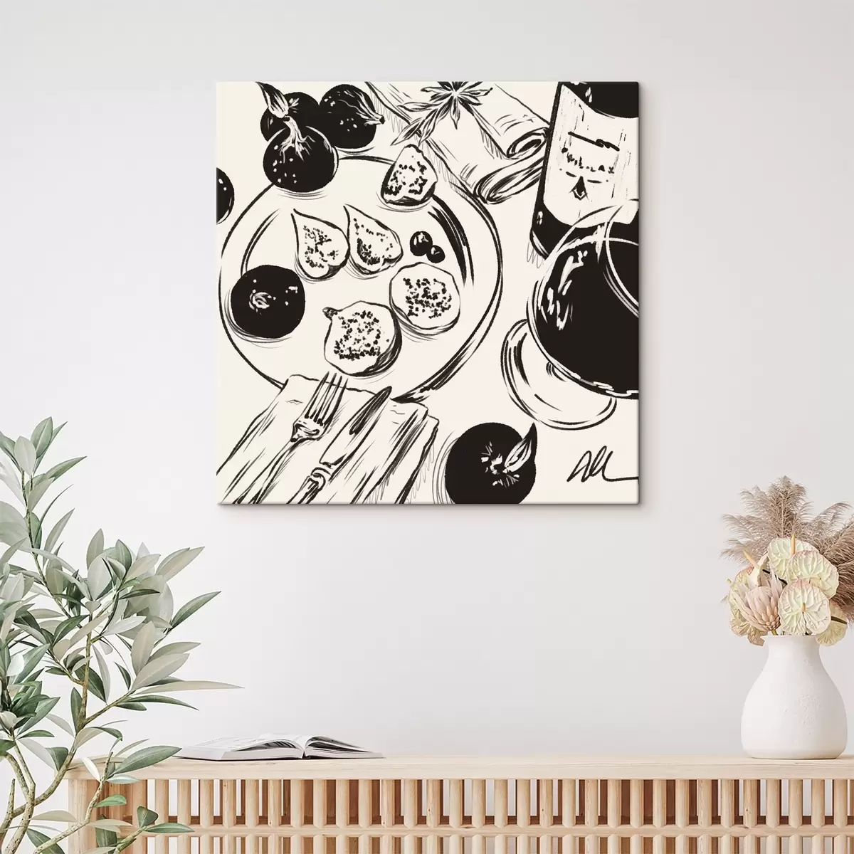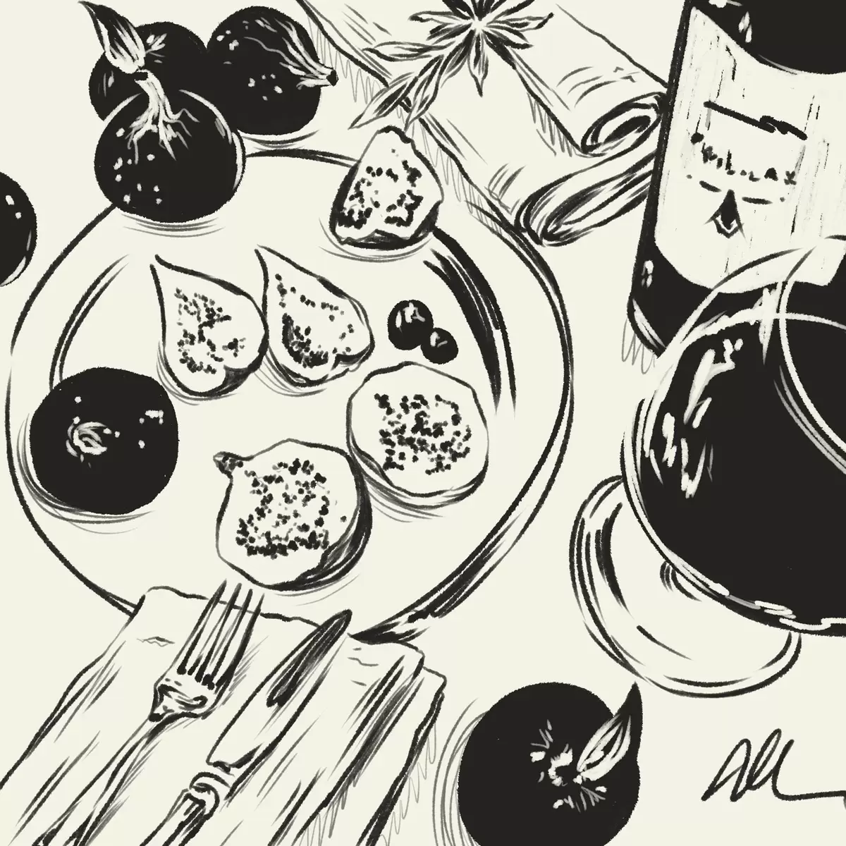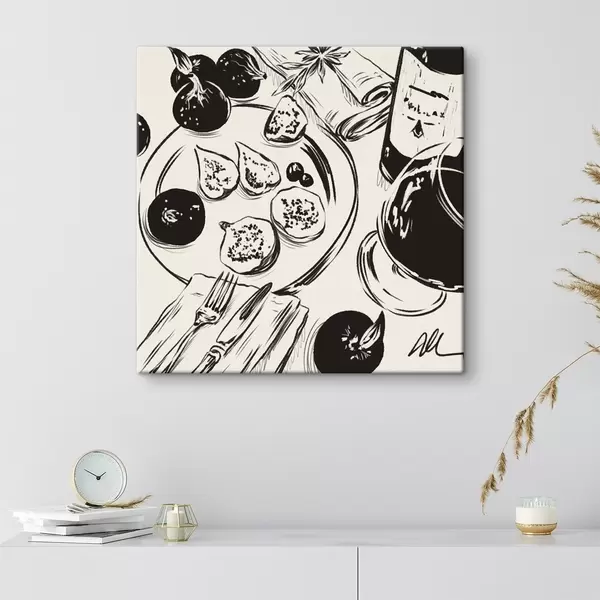 Картина Чорно-білий ескіз столу з фруктами та склянкою s48030