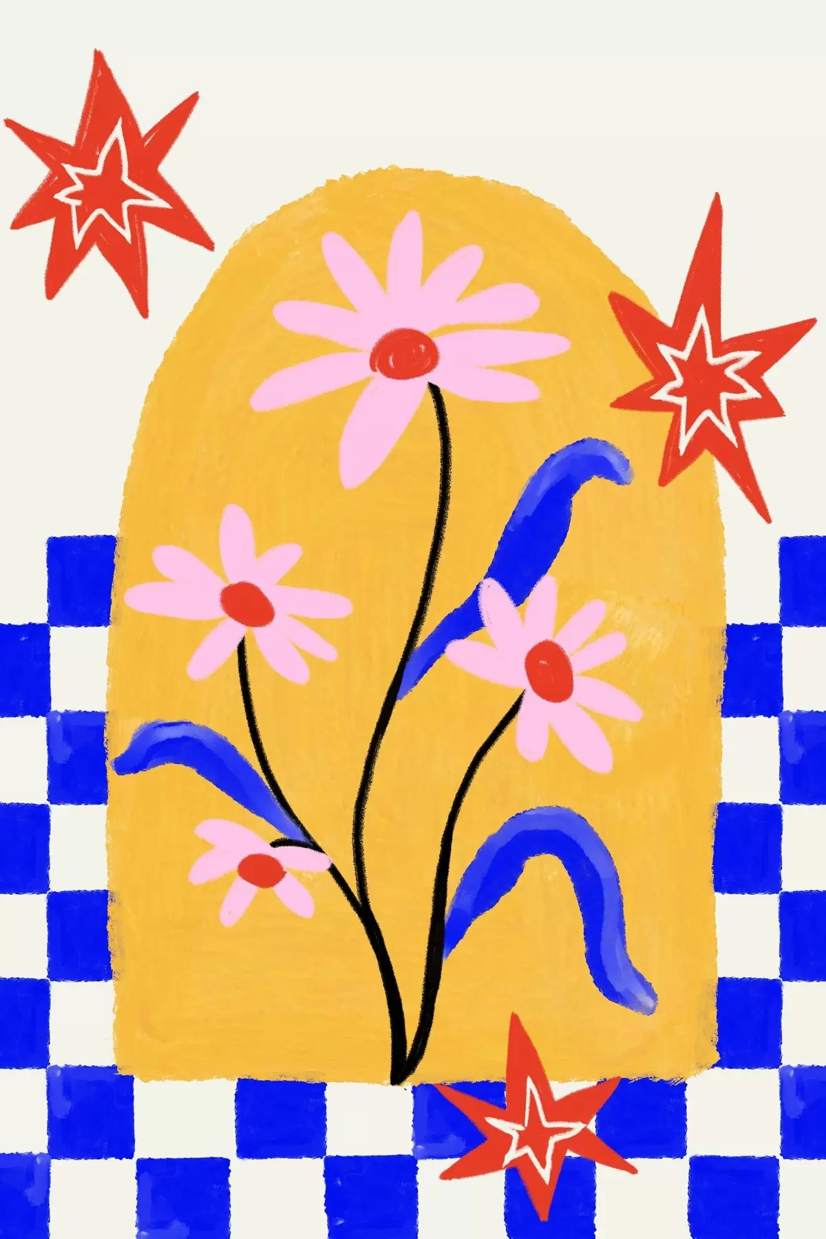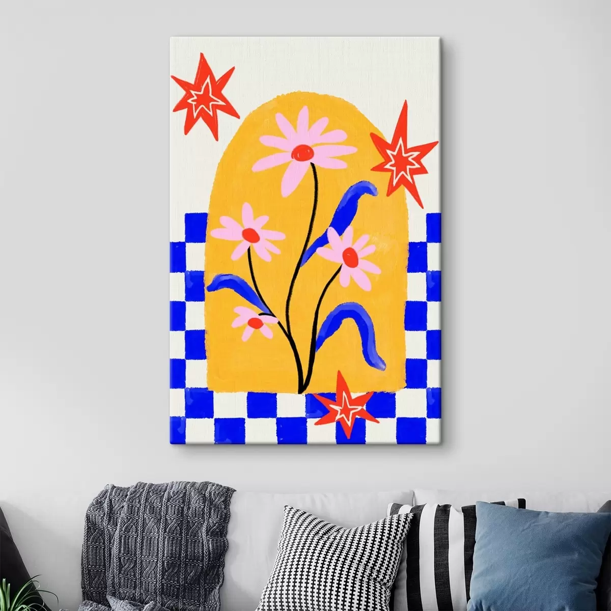 Картина Яскраві квіти на жовтому тлі з синім візерунком s48034