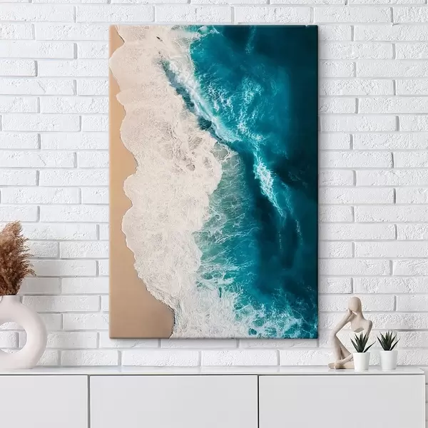 Картина вид зверху на океанські хвилі, що набігають на піщаний пляж Арт. s48062