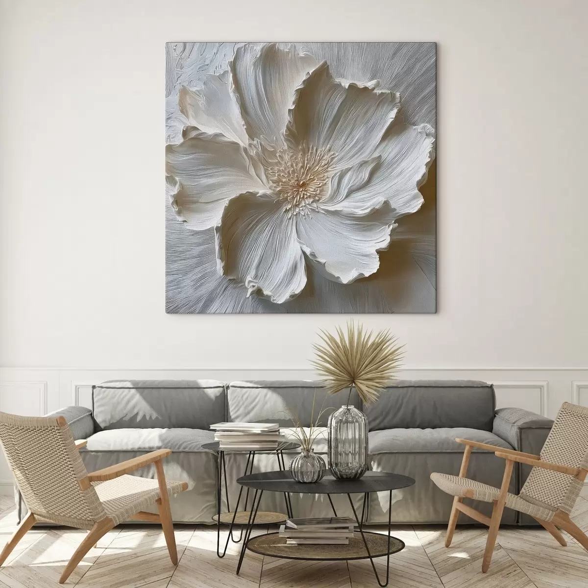 Картина біла гіпсова рельєфна квіткова скульптура s48064