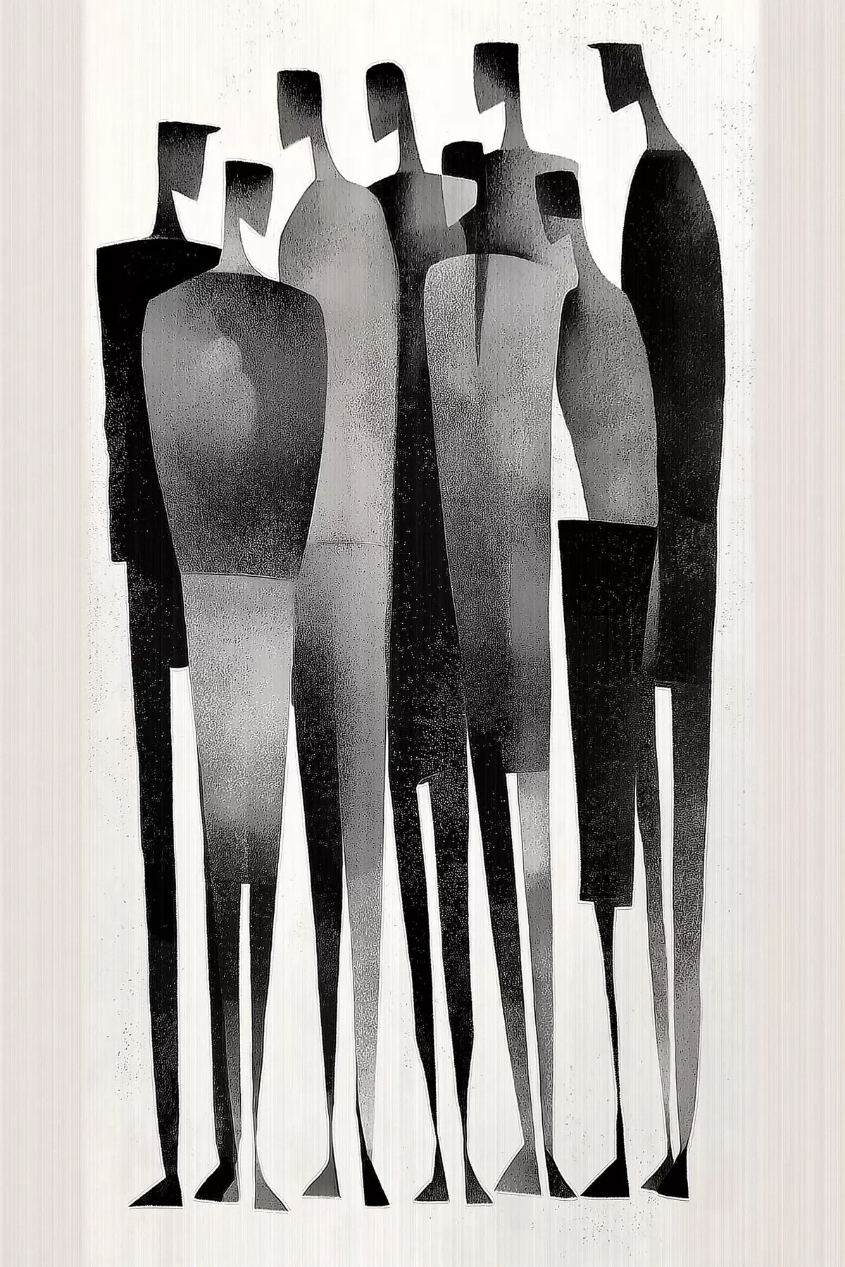 Картина мінімалістичні видовжені людські фігури, що стоять у ряд Арт. s48069